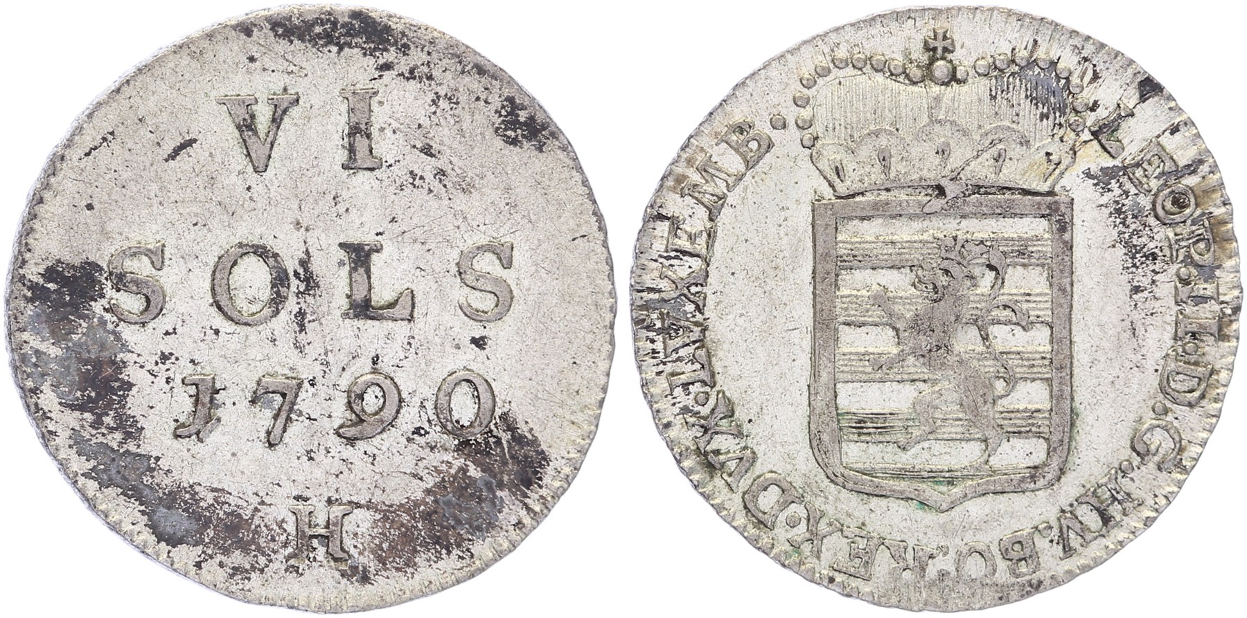 Luxemburg VI Sols 1790 Günzburg. Vanhoudt 880. Zeer fraai.
