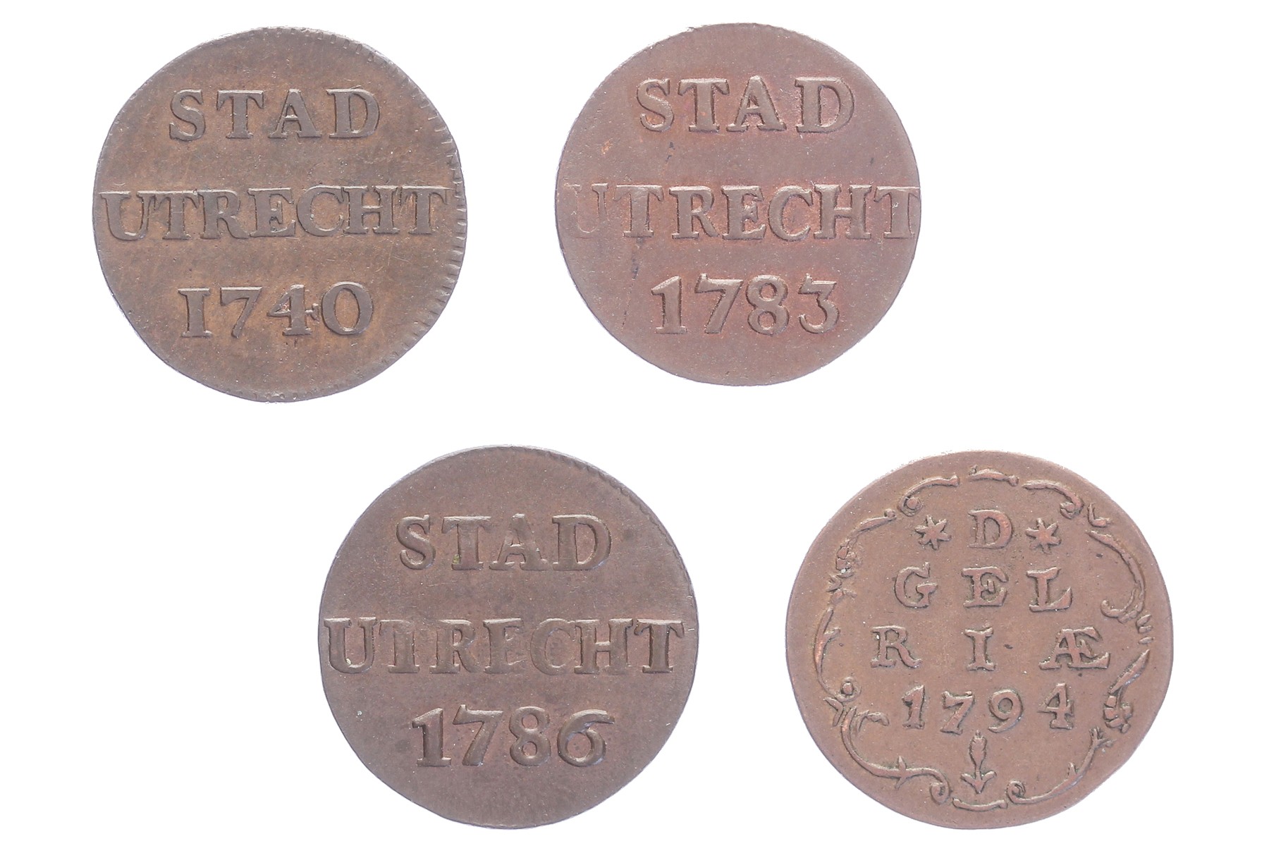 Lot (4) Duiten 1740, 1783, 1786 allen Stad Utrecht en 1794 Gelderland. Zeer fraai / Prachtig.