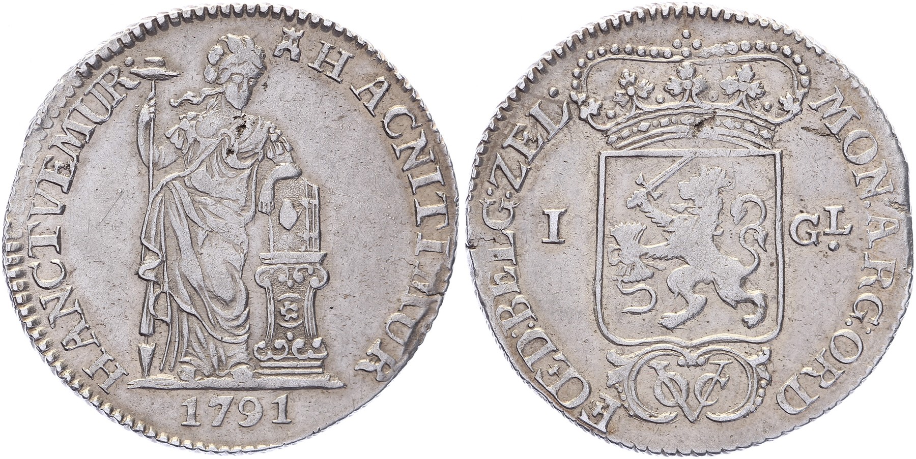 1 Gulden 1791. Scholten 72h. Klemsporen. Zeer fraai.