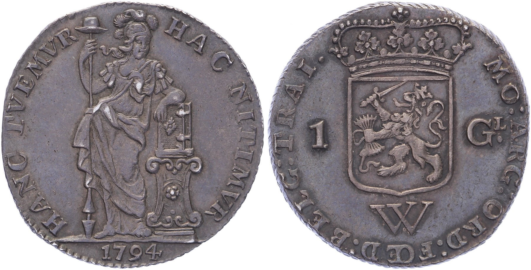 1 Gulden 1794. Scholten 1354. Donker patina. Prachtig.