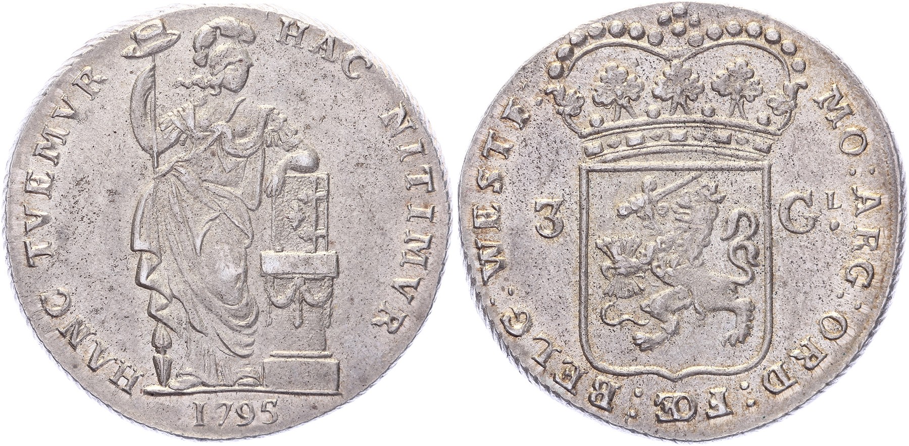 West-Friesland. 3 Gulden 1795. Sch. 85c. Zeldzaam in deze mooie kwaliteit. Prachtig / FDC.