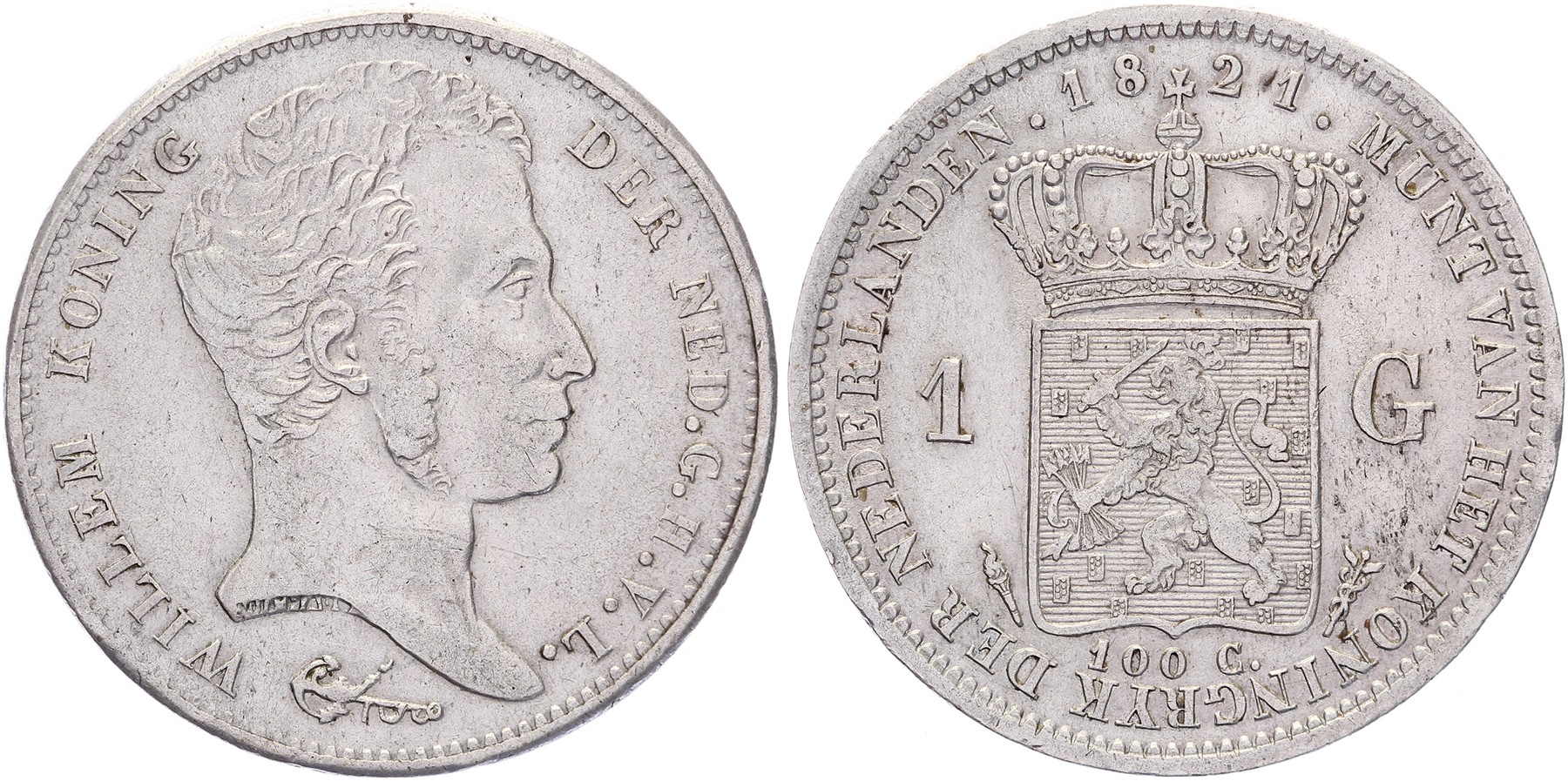 1 Gulden 1821 Utrecht mmt. fakkel Sch. 261 Zeer fraai