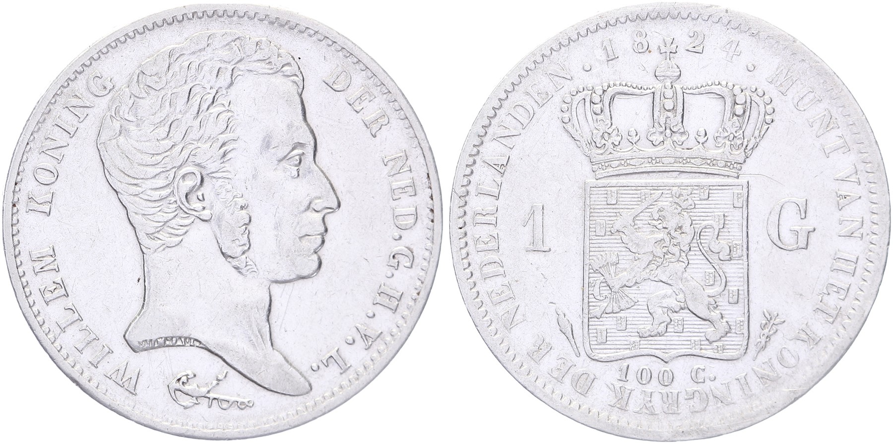 1 Gulden 1824 Utrecht mmt. fakkel Sch. 264b Bijna zeer fraai