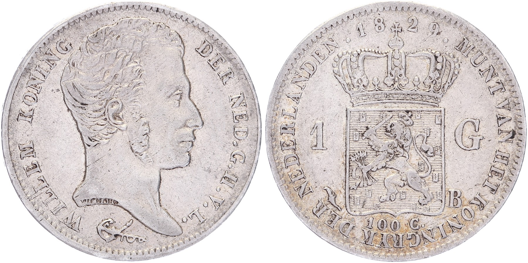 1 Gulden 1829 Brussel mmt. palmtak Sch. 271 Zeer fraai