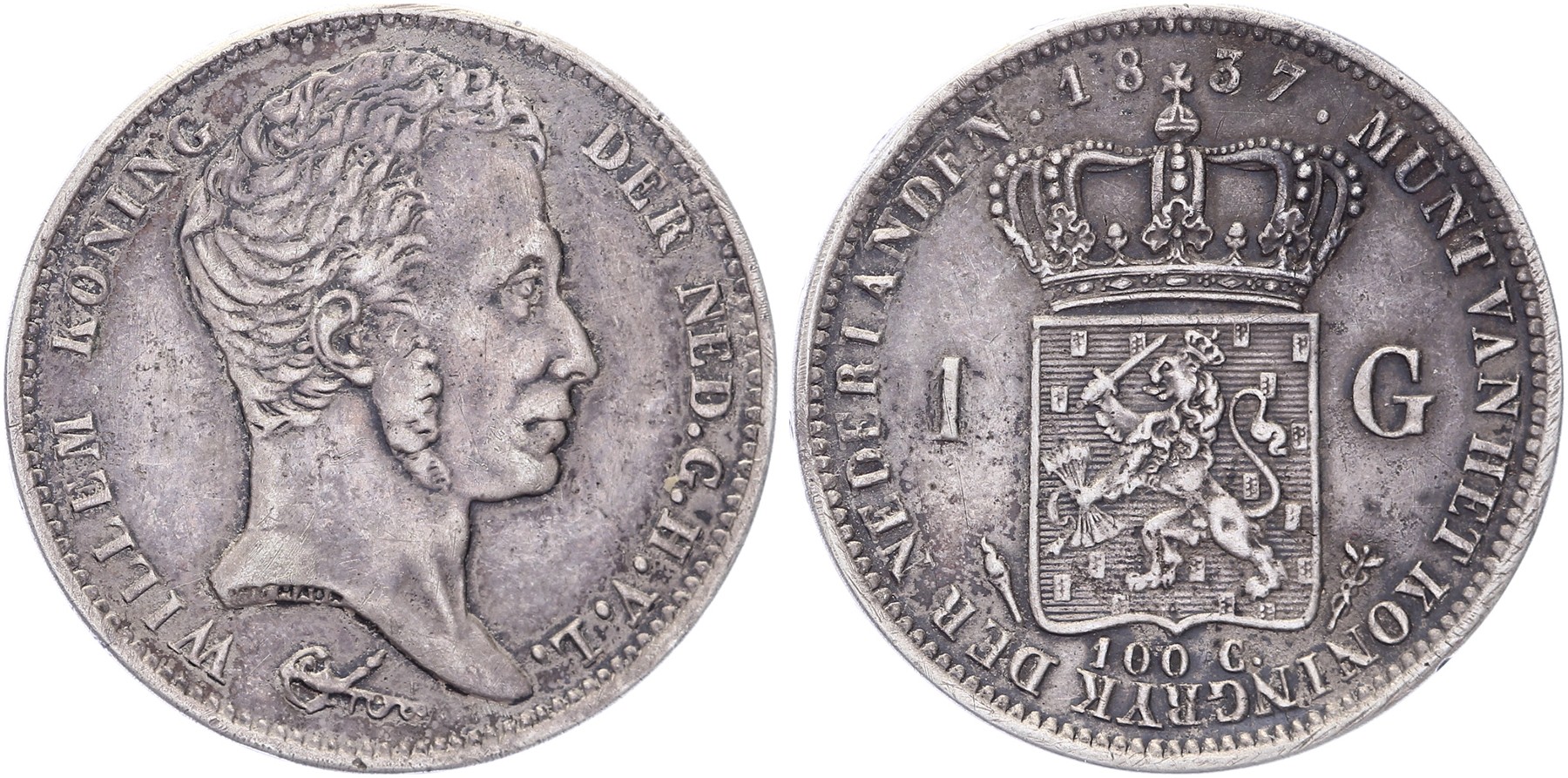 1 Gulden 1837 Utrecht mmt. fakkel Sch. 268. Donkere kleur Fraai / Zeer fraai