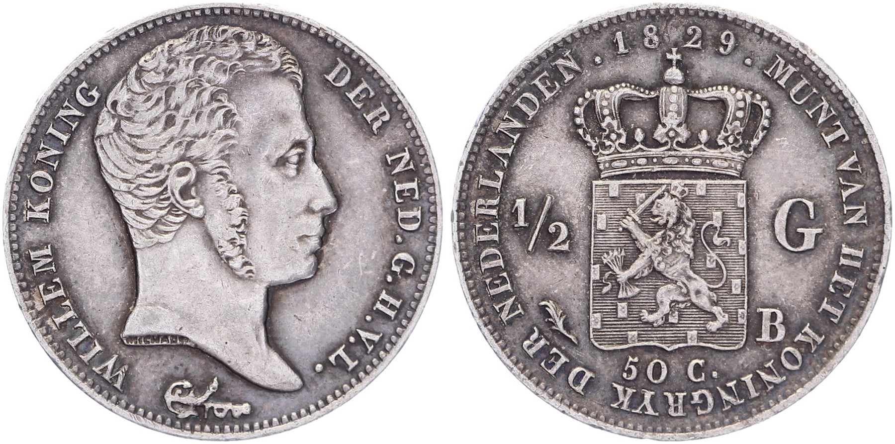 ½ Gulden 1829 Brussel mmt. palmtak Sch. 282. Donkere kleur Ruim zeer fraai