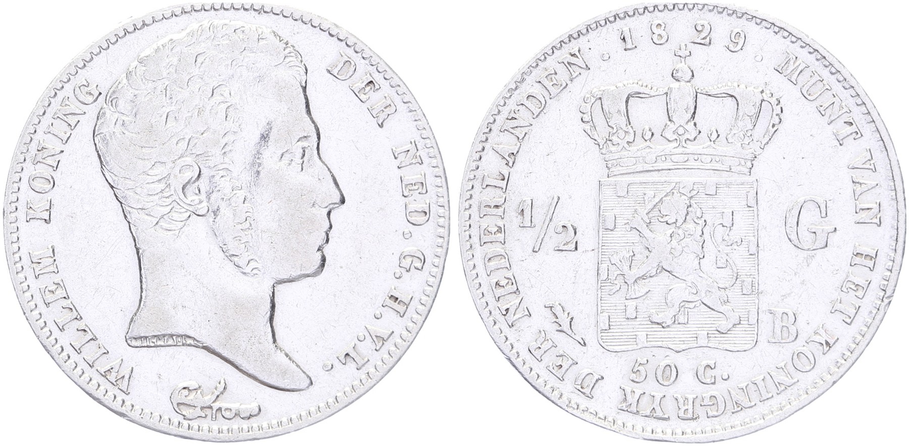 ½ Gulden 1829 Brussel mmt. palmtak Sch. 282 Zeer fraai