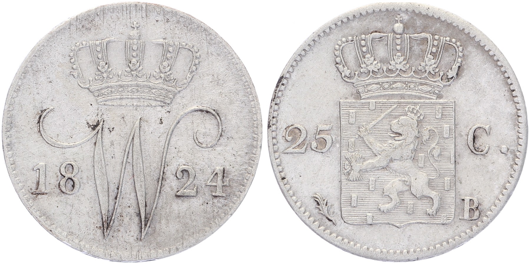 25 Cents 1824 Brussel mmt. palmtak Sch. 295 Vrijwel zeer fraai
