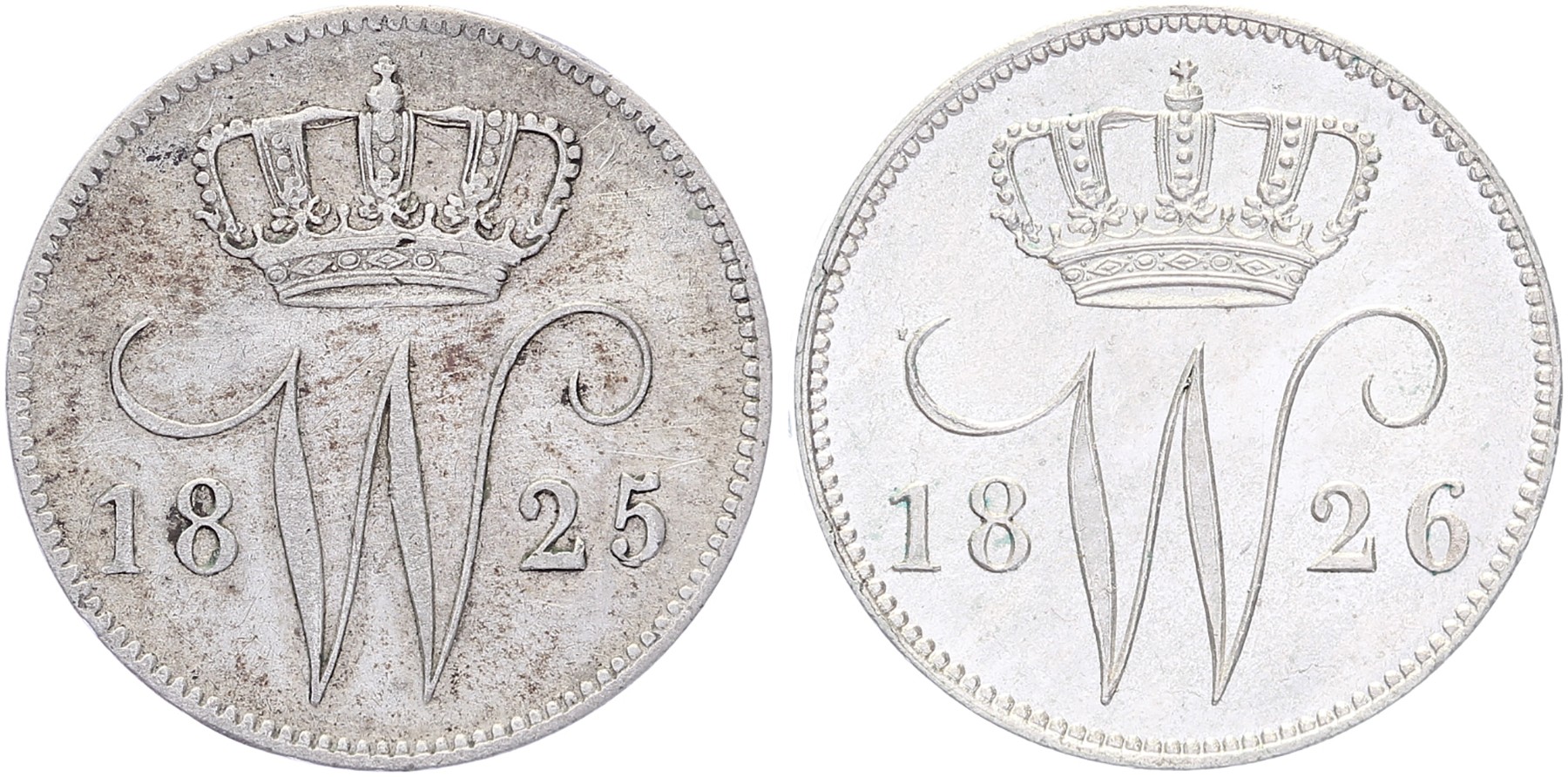 Lot (2) 25 Cents 1825 U (overslag?) en 1826 U Sch. 289 en 290 Zeer fraai en beter