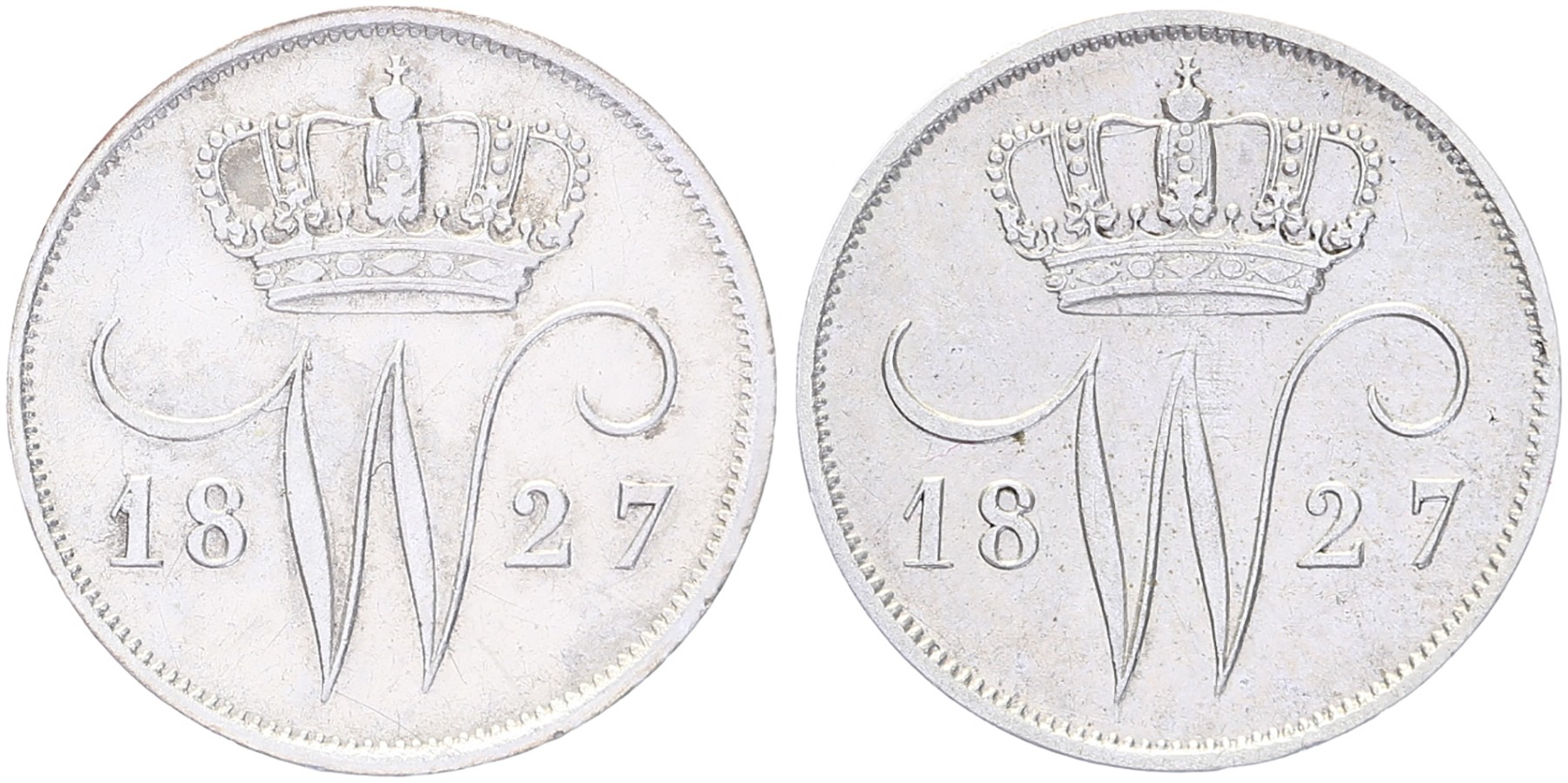 Lot (2) 10 Cents 1827 U en 1827 B Sch. 307 en 312 Ruim zeer fraai