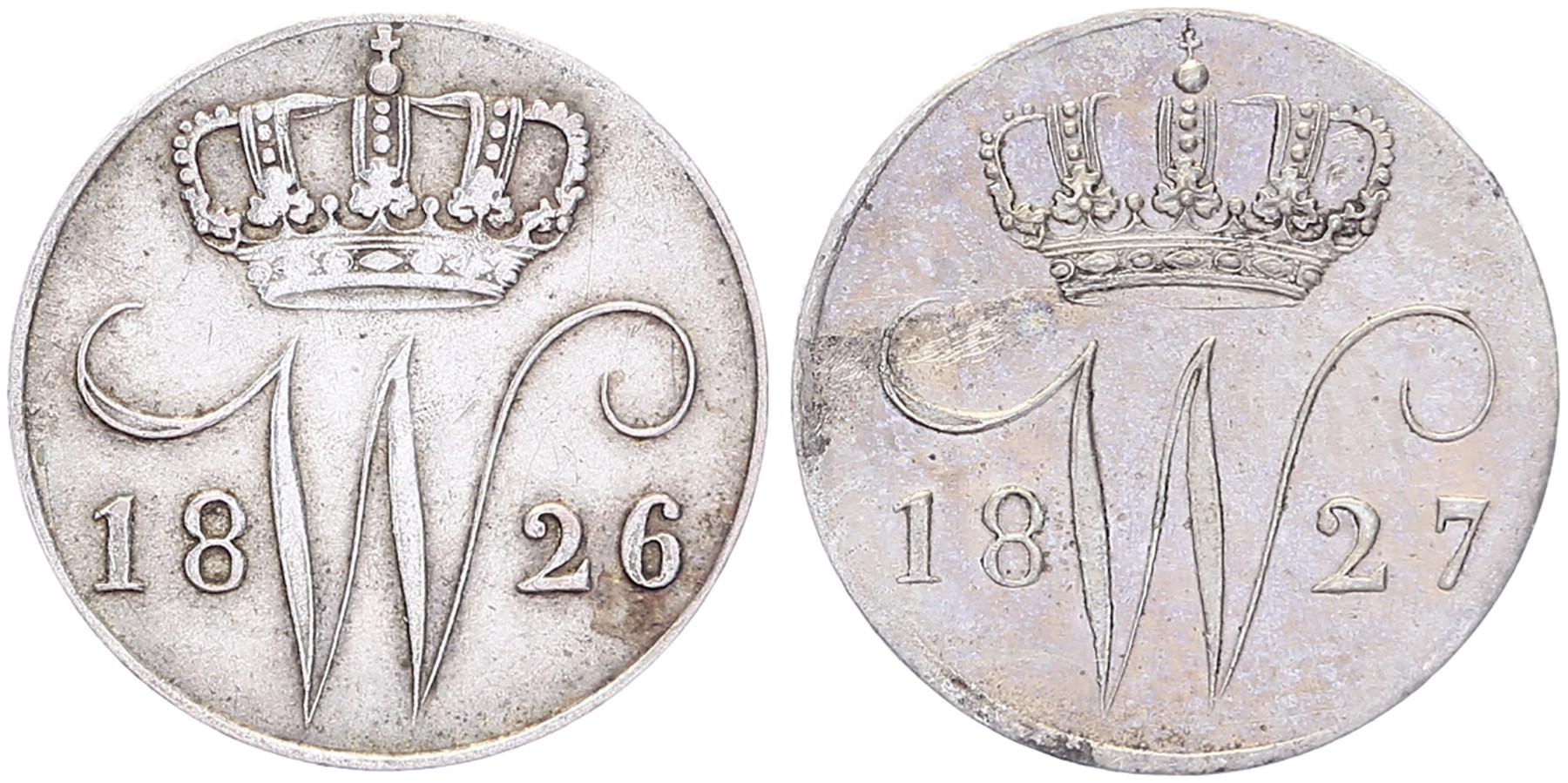 Lot (2) 5 Cents 1826 B en 1827 U Sch. 319 en 317 Fraai / Zeer fraai