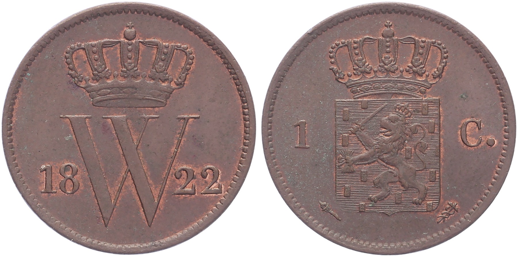 1 Cent 1822 Utrecht mmt. fakkel Sch. 326a. Mooie kleur Prachtig / FDC