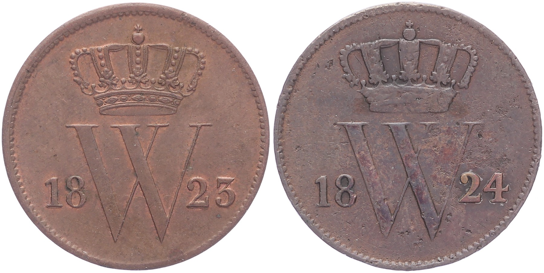 Lot (2) 1 Cent 1823 U en 1824 U Sch. 327 en 328 Zeer fraai en beter
