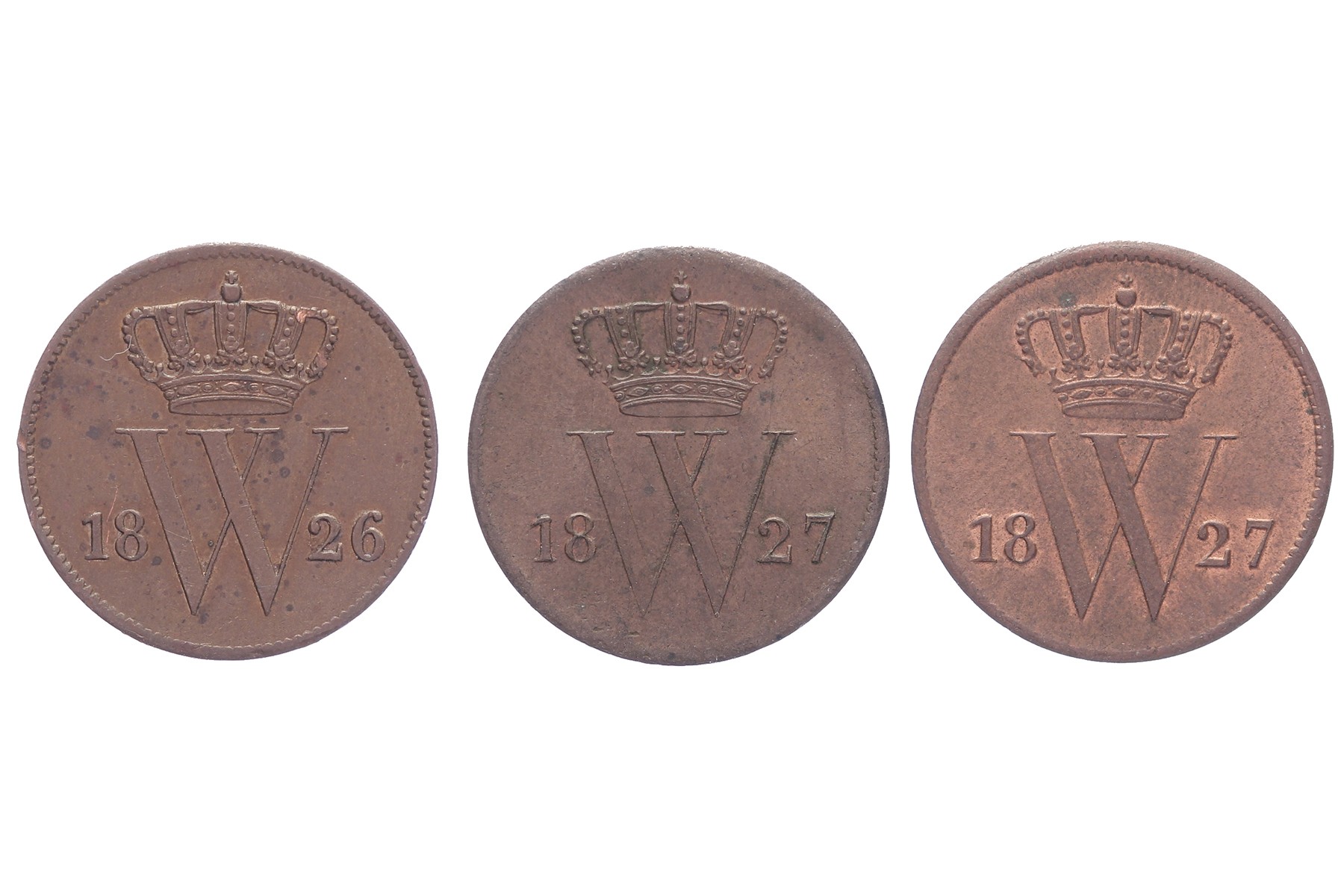 Lot (3) 1 Cent 1826 U, 1827 U en 1827 B Sch. 329, 330 en 334 Zeer fraai en beter