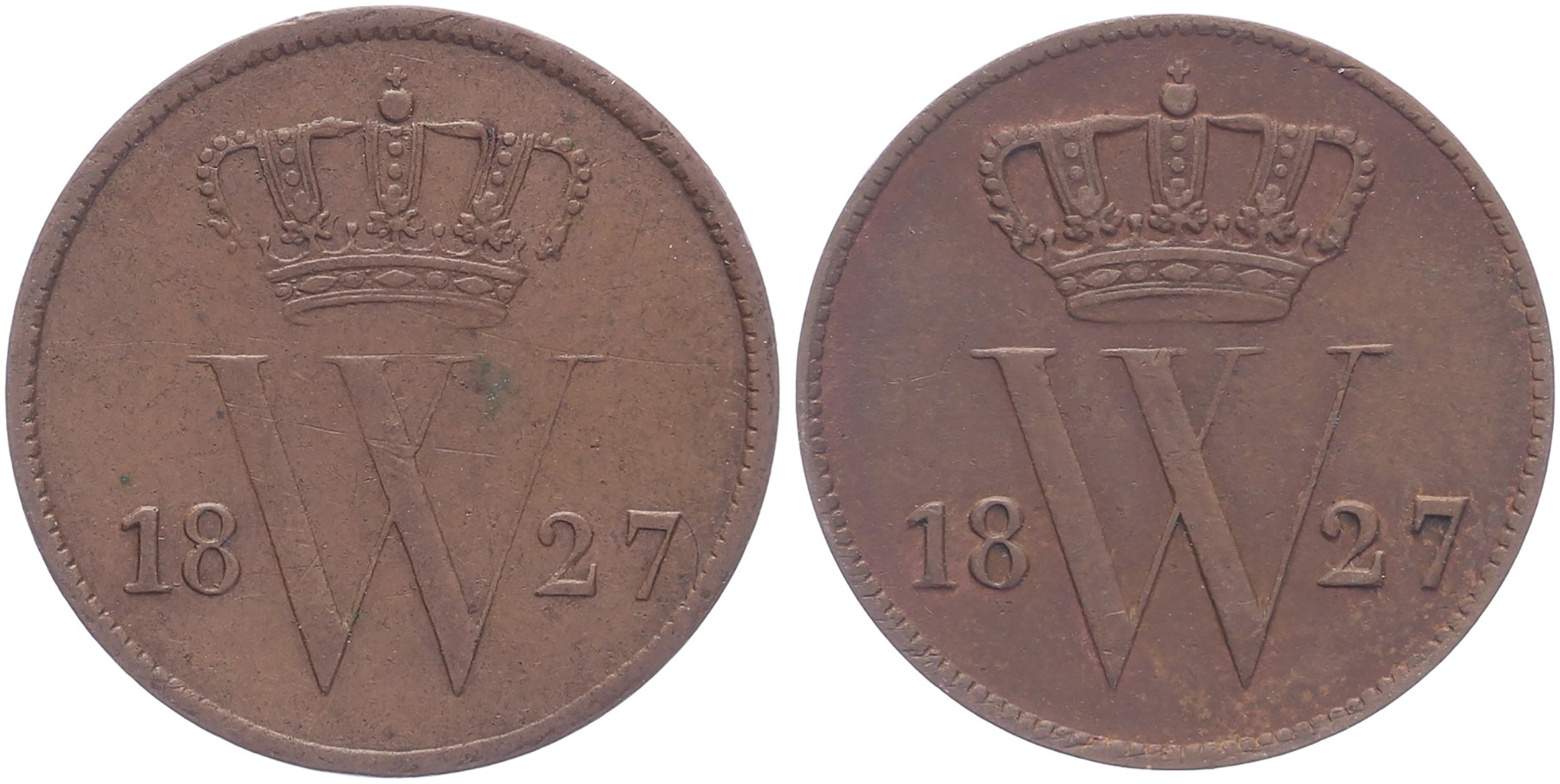 Lot (2) 1 Cent 1827 U en 1827 B Sch. 330 en 344 Ruim zeer fraai