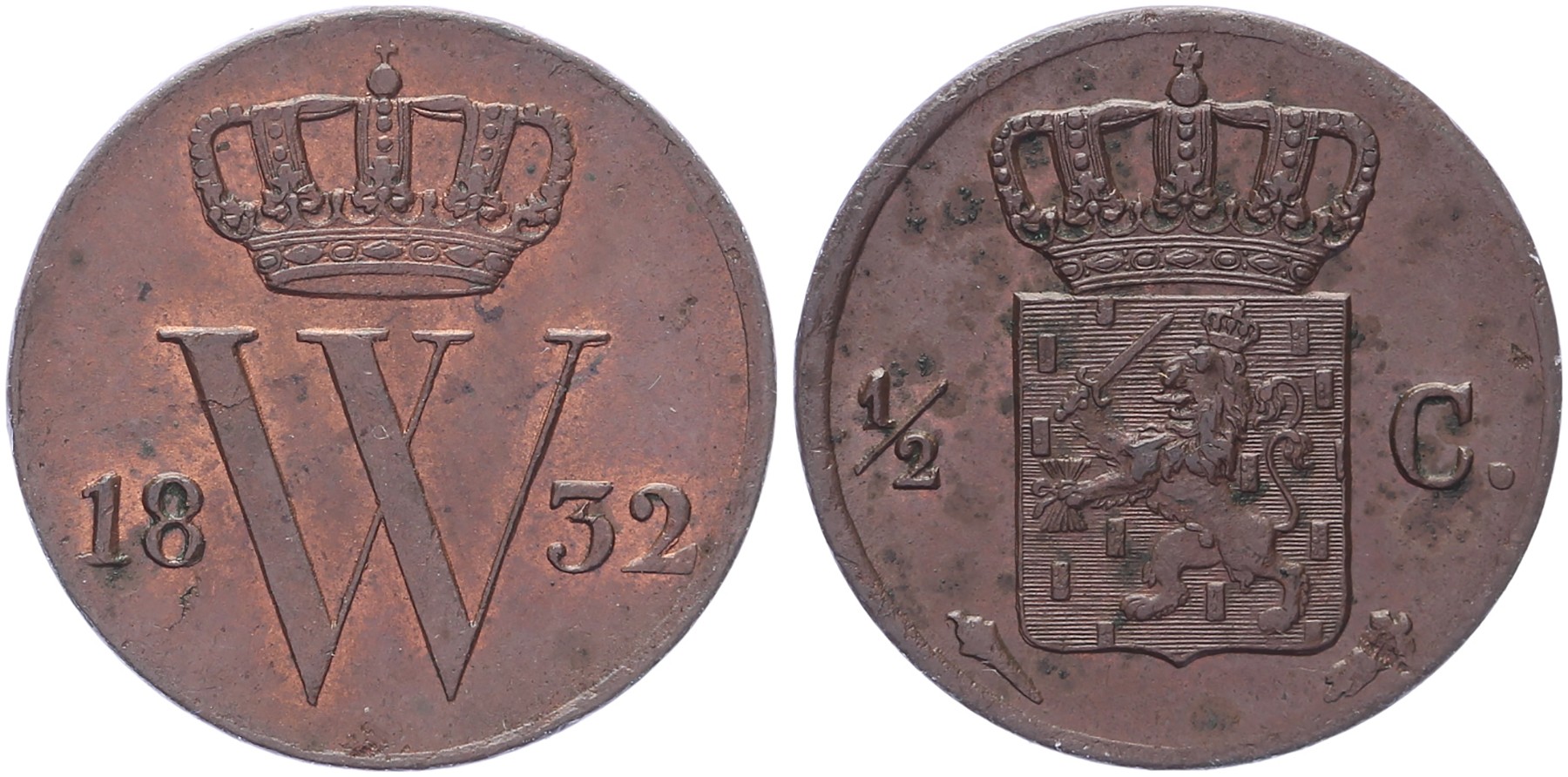 ½ Cent 1832 mmt. fakkel Sch. 362. Originele kleur! Vrijwel FDC