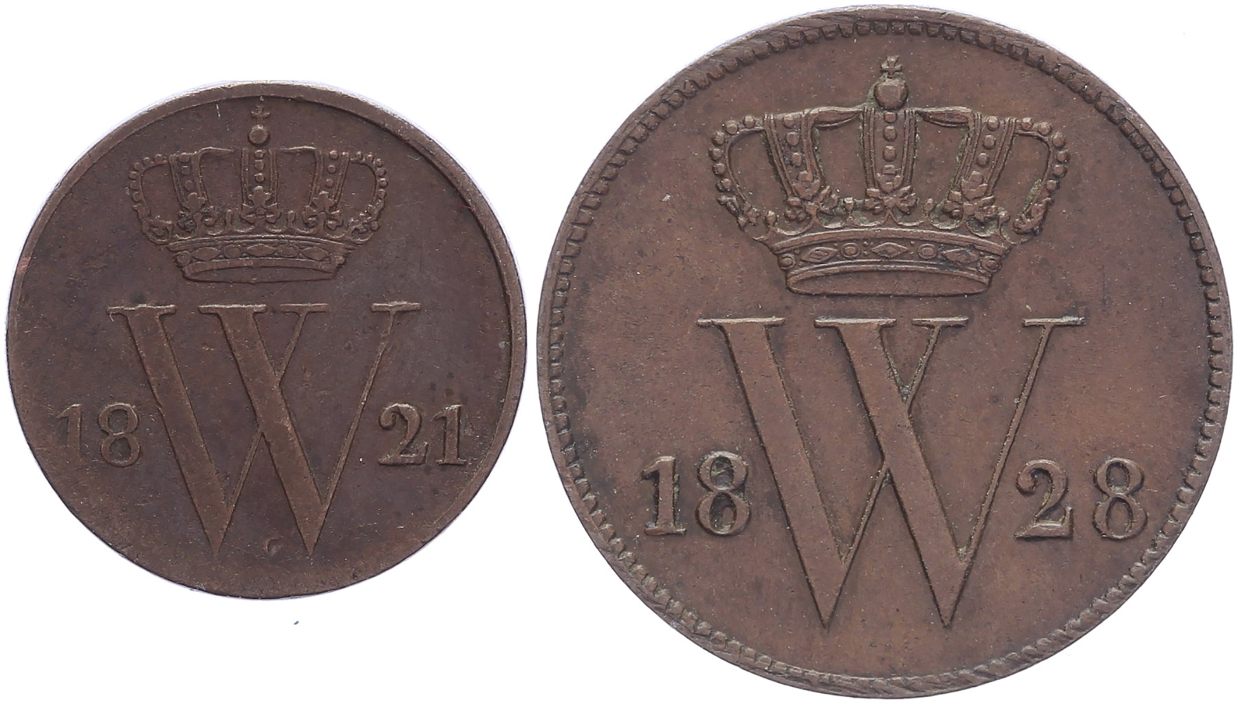Lot (2) ½ Cent 1821 B en 1 Cent 1828 B Sch. 366 en 345 Fraai en beter