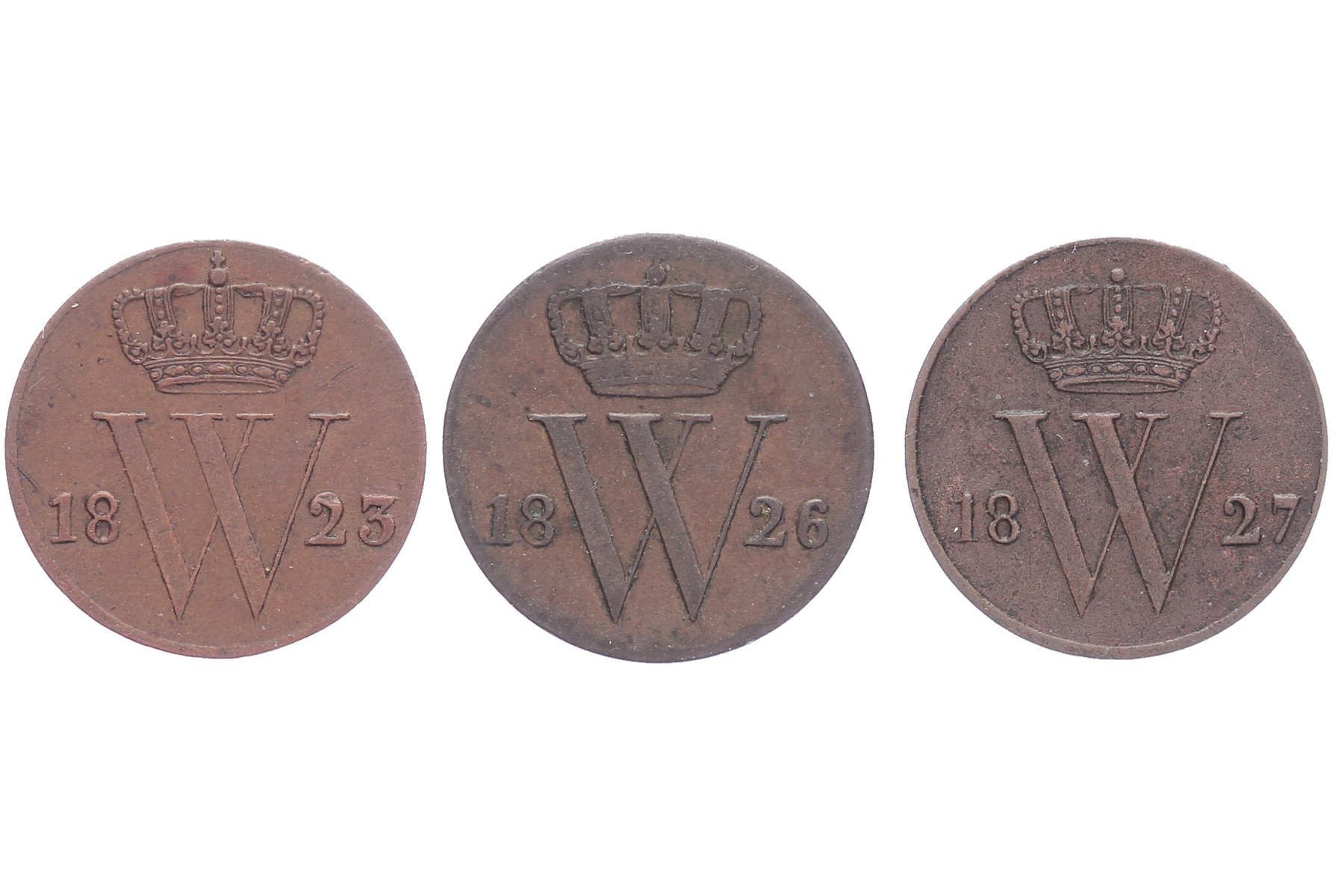 Lot (3) ½ Cent 1823 U, 1826 B en 1827 U Sch. 354, 371 en 357 Zeer fraai