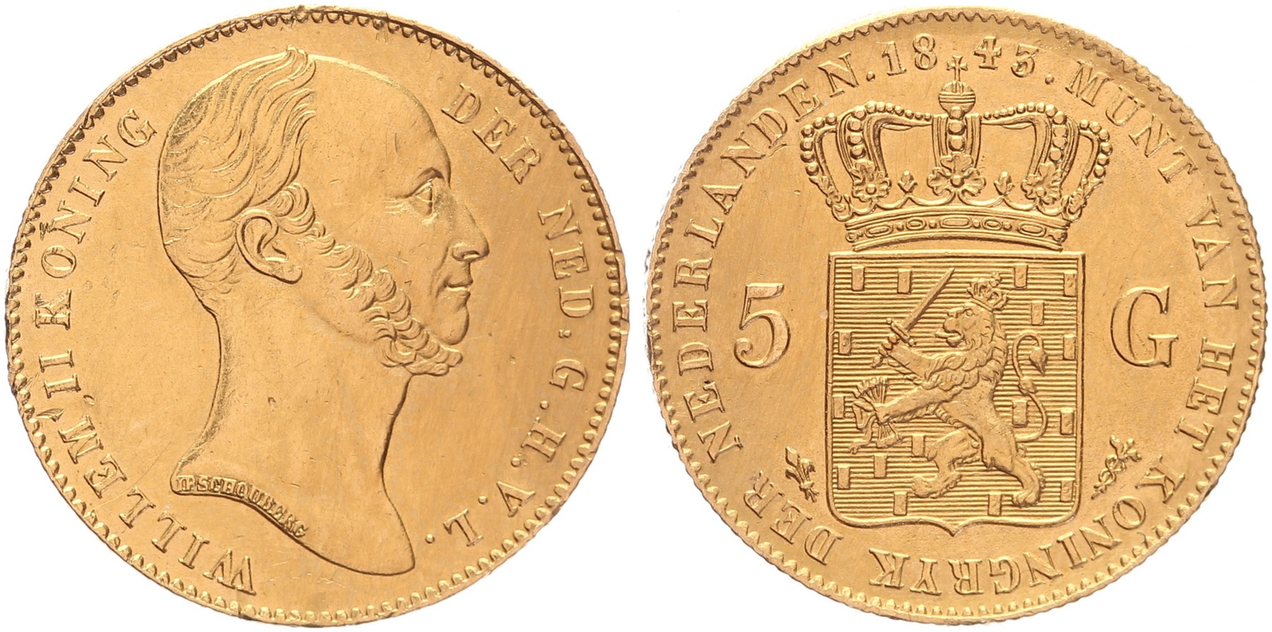 5 Gulden 1843 mmt. lelie Sch. 503 Prachtig