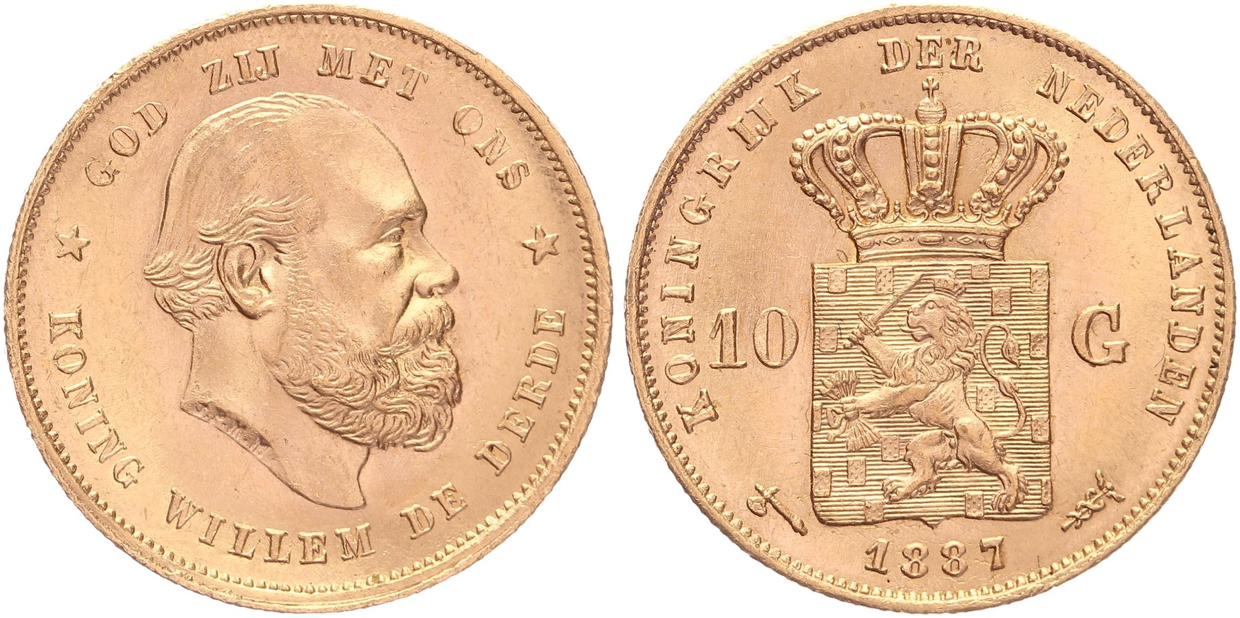 10 Gulden 1887 mmt. bijl Sch. 556 Prachtig