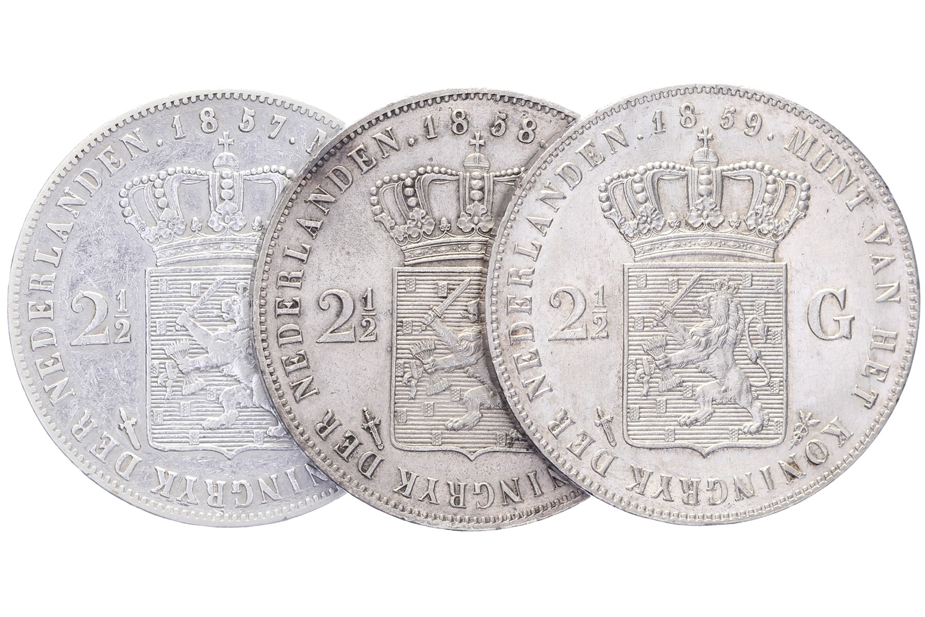 Lot (3) Rijksdaalder 1857, 1858 en 1859 Sch. 582 t/m 584 Vrijwel zeer fraai