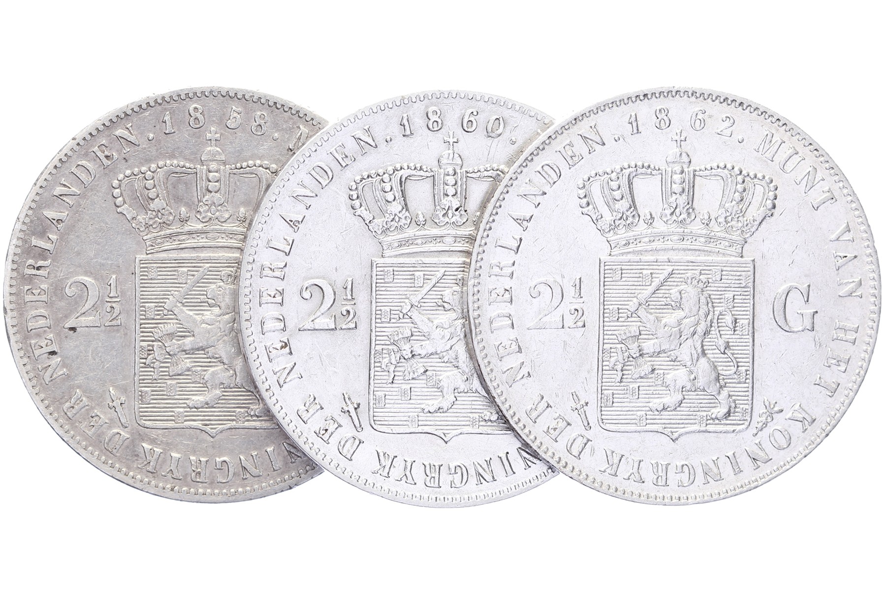 Lot (3) Rijksdaalder 1858, 1860 en 1862 Sch. 584, 586 en 588 Vrijwel zeer fraai