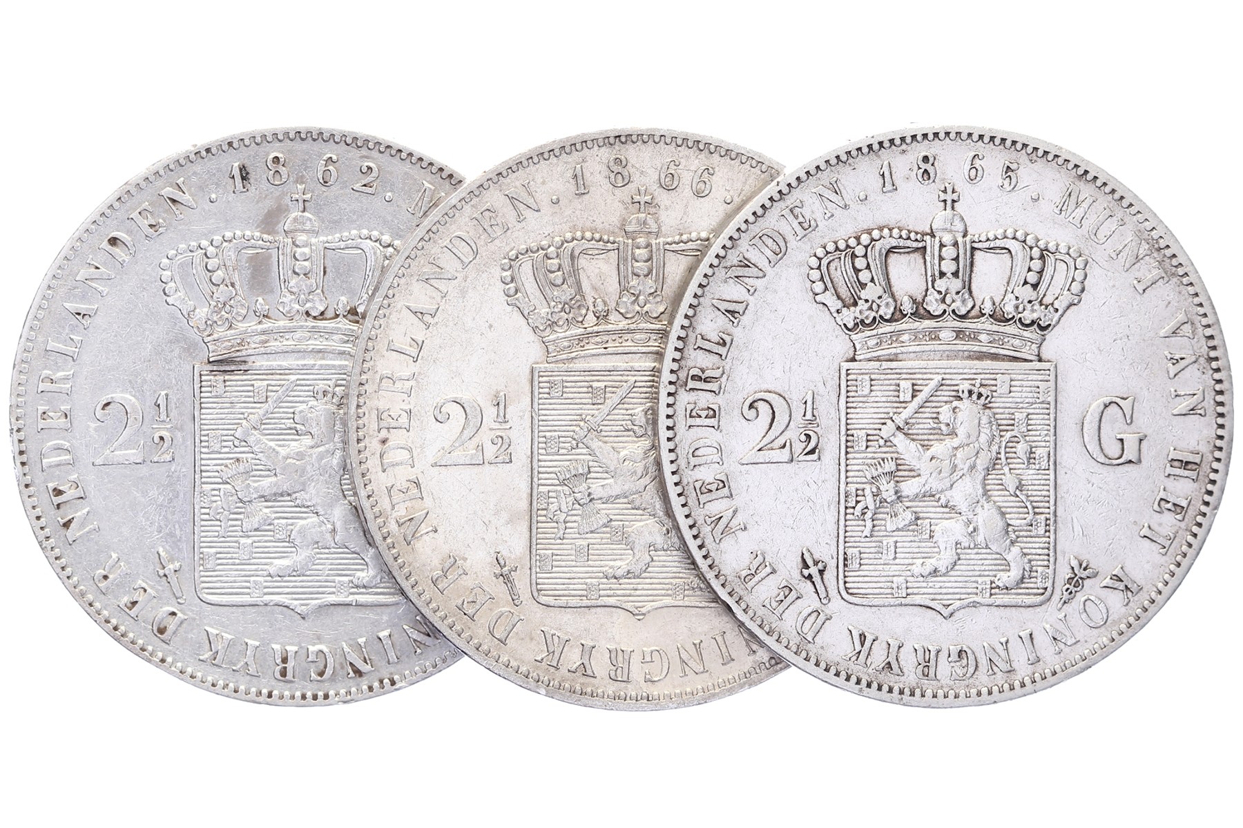 Lot (3) Rijksdaalder 1862, 1865 en 1866 Sch. 588, 591 en 592 Vrijwel zeer fraai