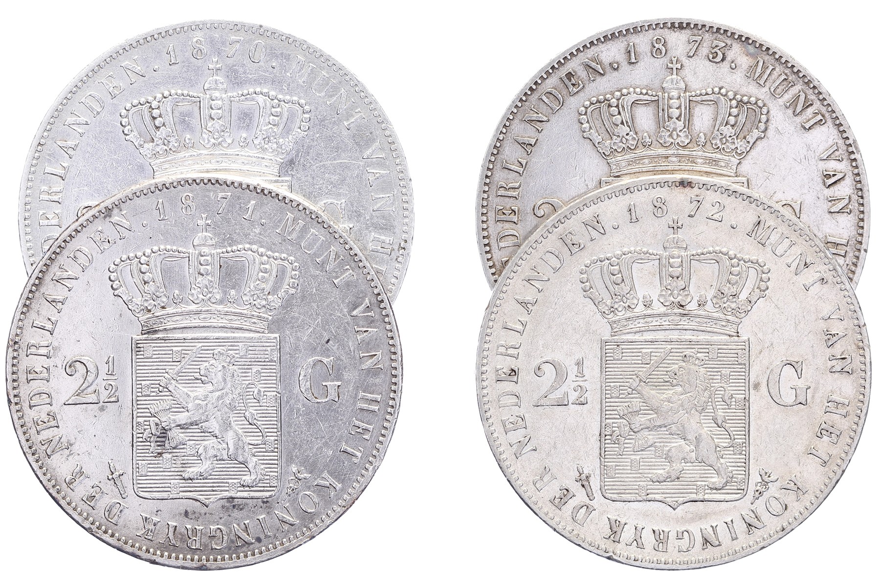 Lot (4) Rijksdaalder 1870, 1871, 1872 en 1873 Sch. 596 t/m 599 Ruim zeer fraai