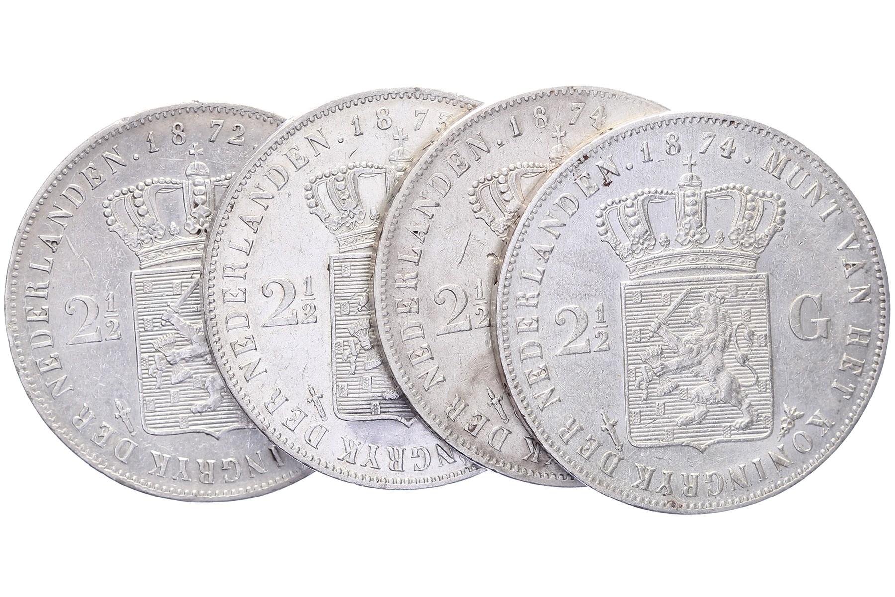 Lot (4) Rijksdaalder 1872, 1873, 1874I en 1874II Sch. 598, 599, 600 en 602 Zeer fraai