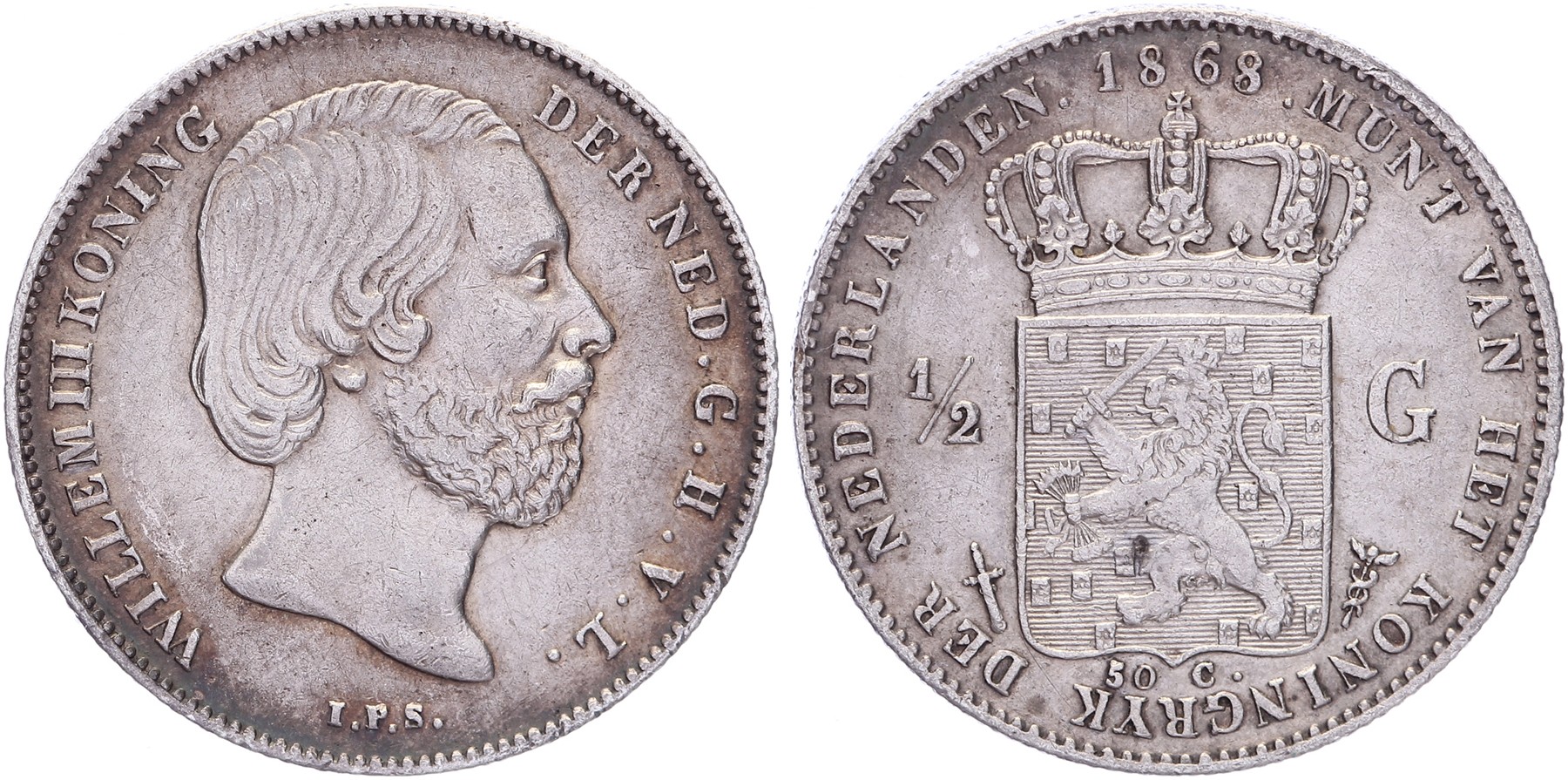 ½ Gulden 1868 mmt. zwaard Sch. 633 Zeer fraai
