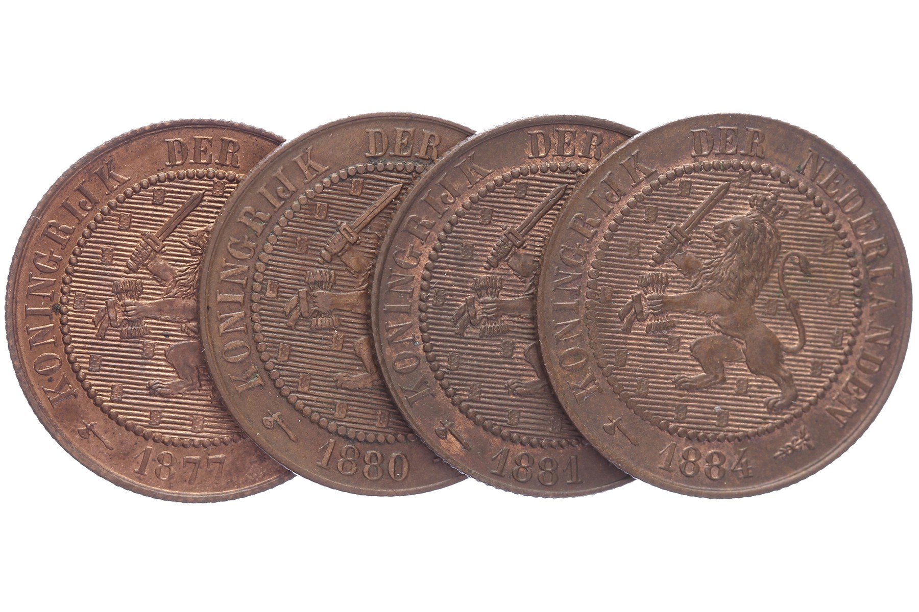 Lot (4) 2 ½ Cent 1877, 1880, 1881 en 1884 Sch. 679 t/m 681, 683. Originele kleur Prachtig / FDC