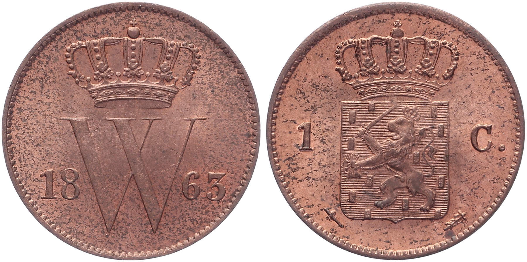 1 Cent 1863 mmt. zwaard Sch. 688. Originele kleur Prachtig / FDC