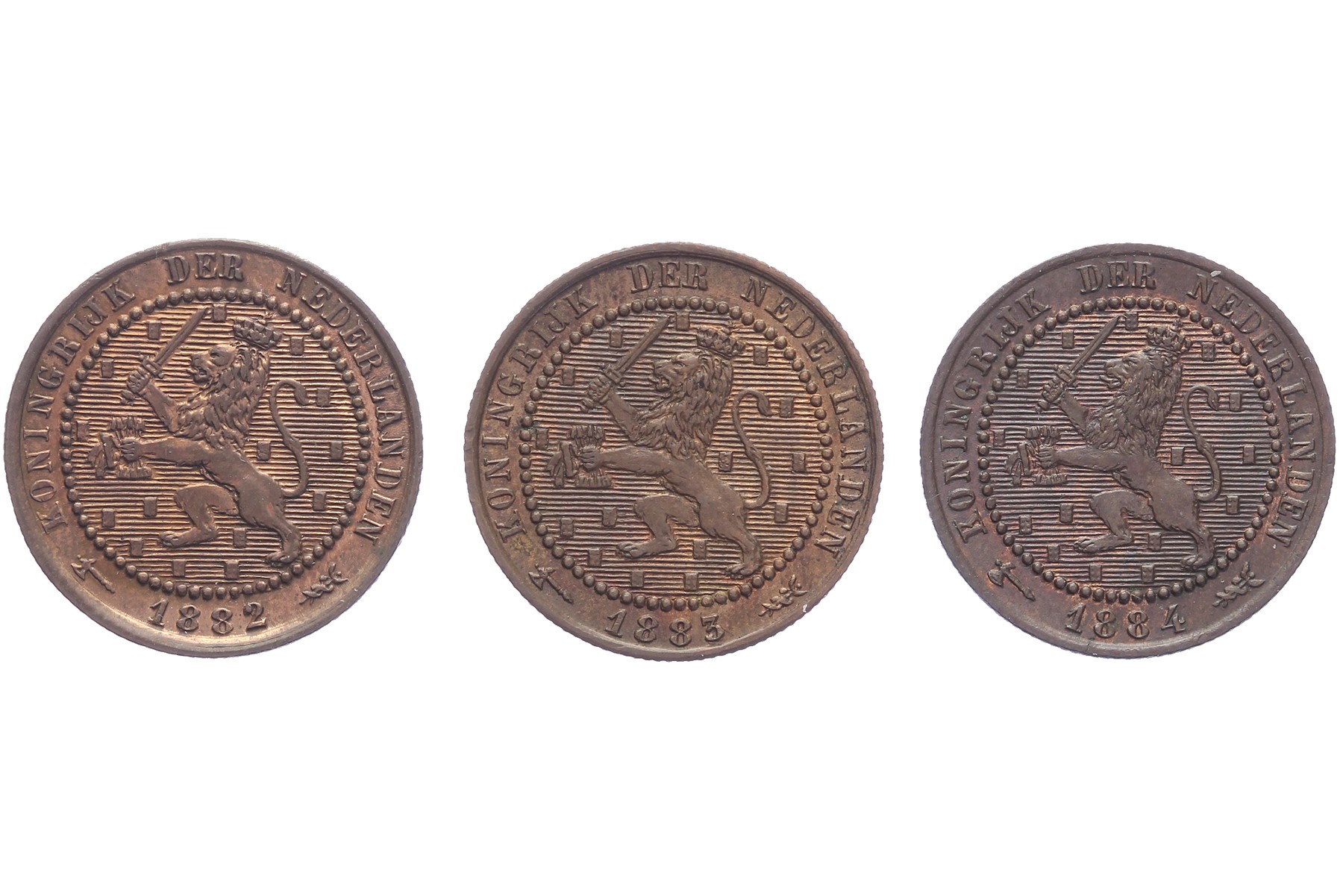 Lot (3) 1 Cent 1882, 1883 en 1884 Sch. 699 t/m 701. Originele kleur Prachtig / FDC
