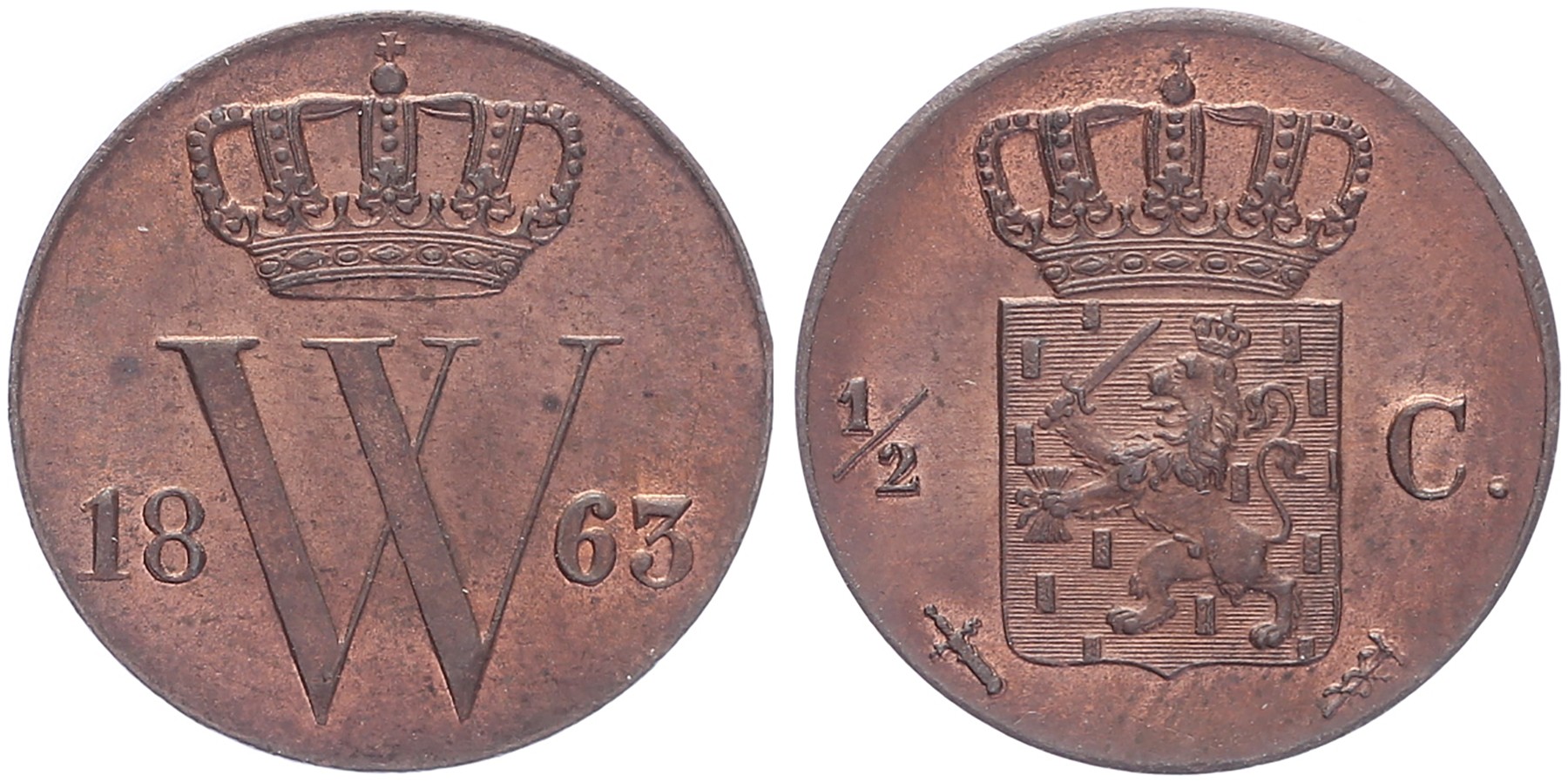 ½ Cent 1863 mmt. zwaard Sch. 713. Originele kleur Vrijwel FDC
