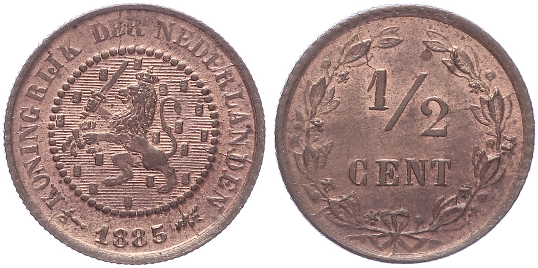 ½ Cent 1885 mmt. bijl Sch. 727. Originele kleur FDC