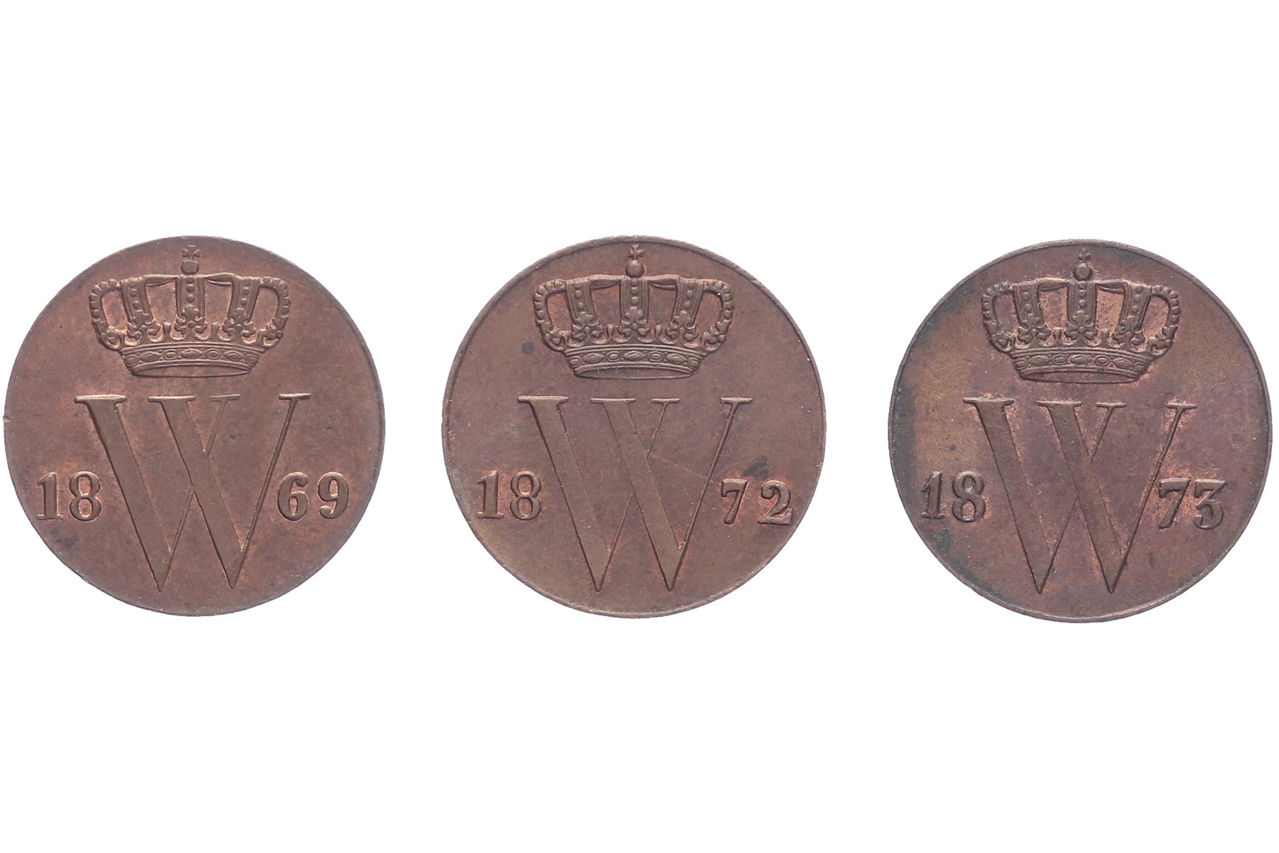Lot (3) ½ Cent 1869, 1872 en 1873 Sch. 717, 719 en 720. Originele kleur Prachtig+