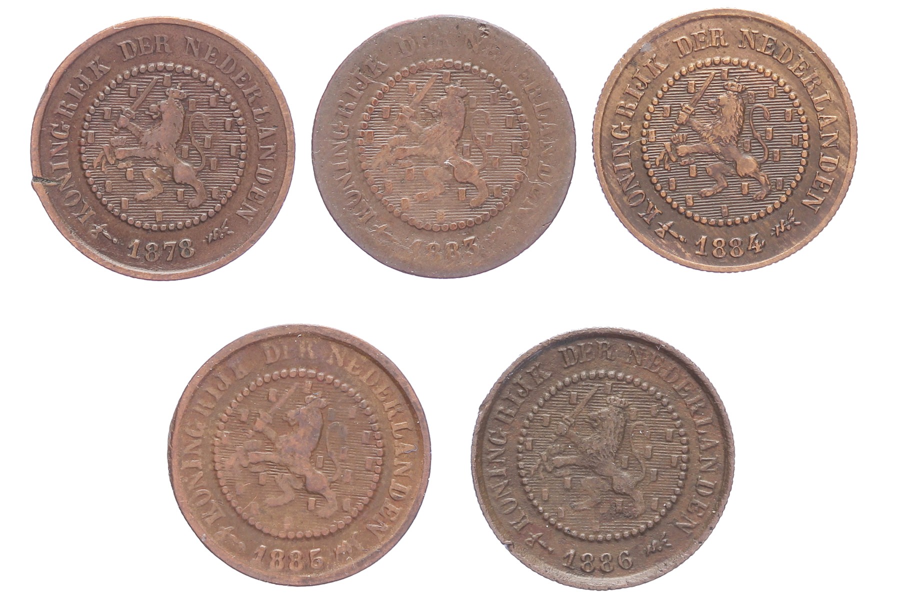 Lot (5) Complete serie ½ centen nieuw type; 1878, 1883, 1884, 1885 en 1886 Sch. 724 t/m 728 Fraai / Zeer fraai