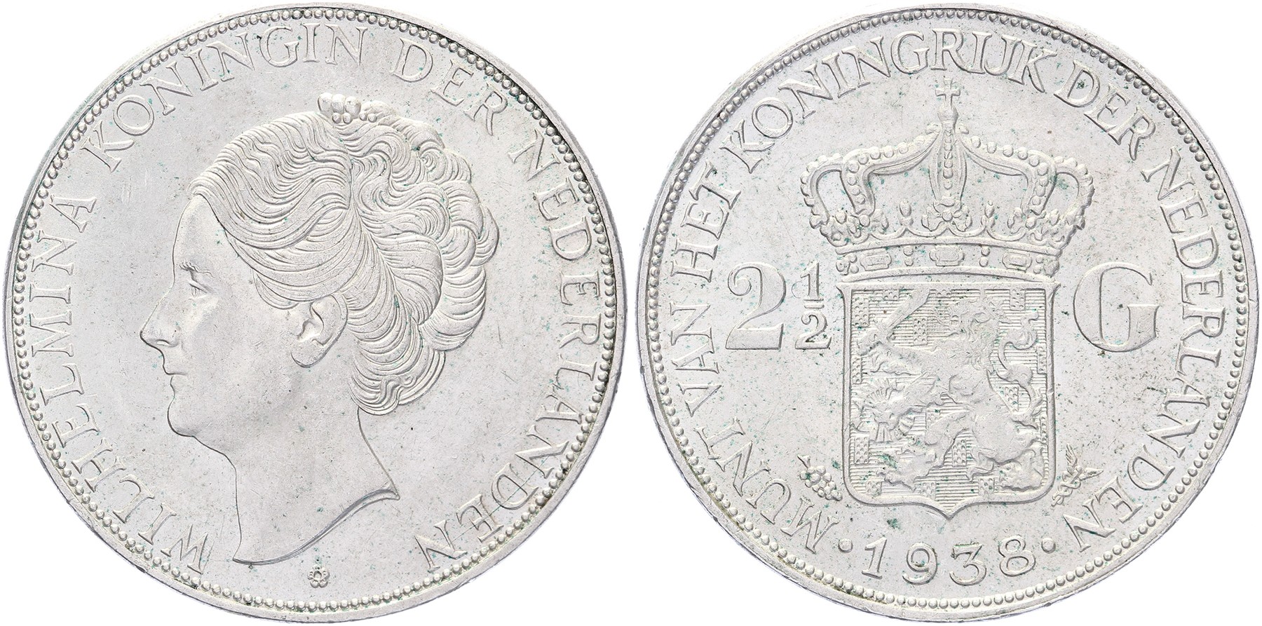 Rijksdaalder 1938 mmt. druiventros Sch. 790a. Grof haar Prachtig