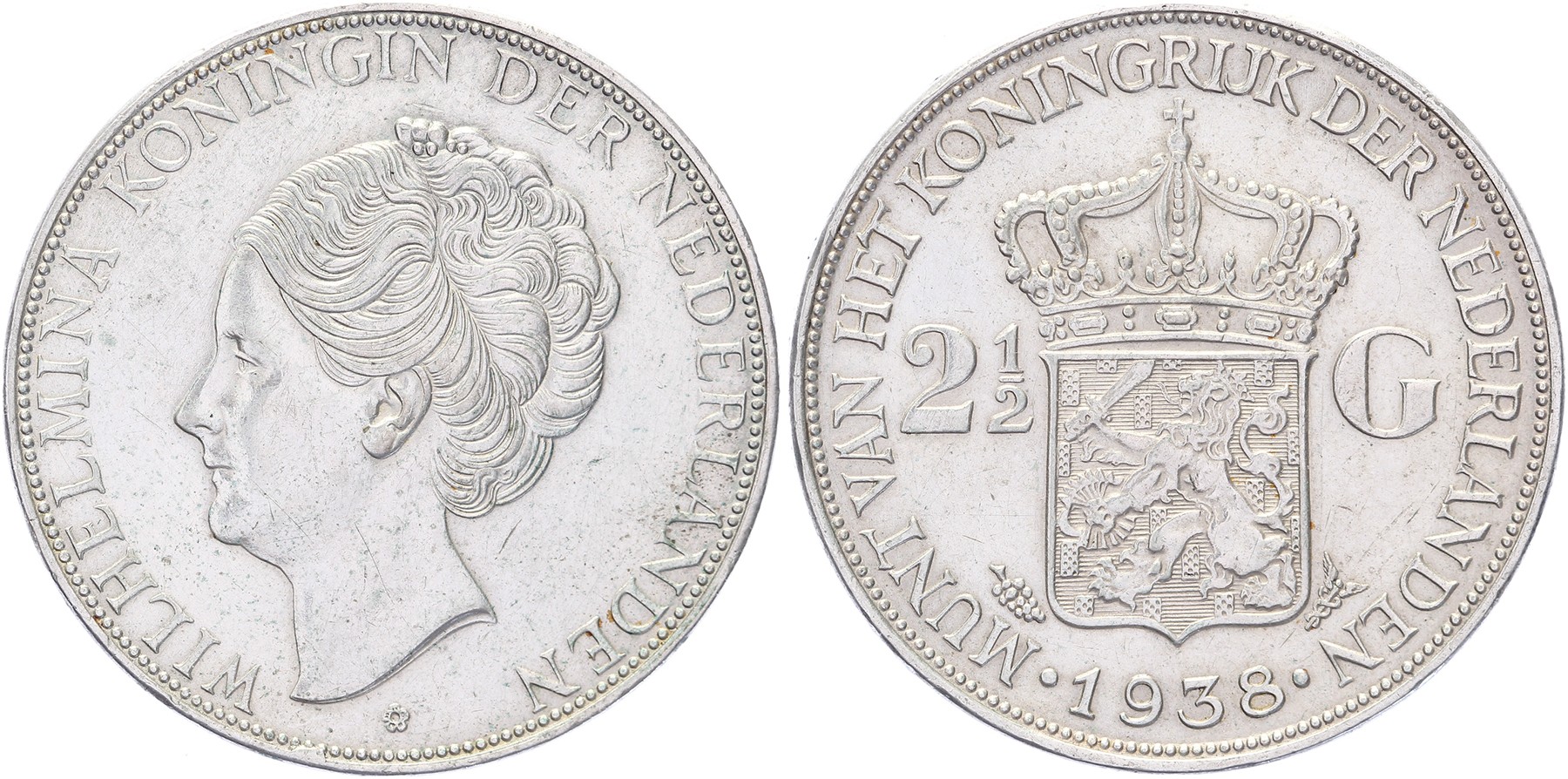 Rijksdaalder 1938 mmt. druiventros Sch. 790a. Grof haar Zeer fraai