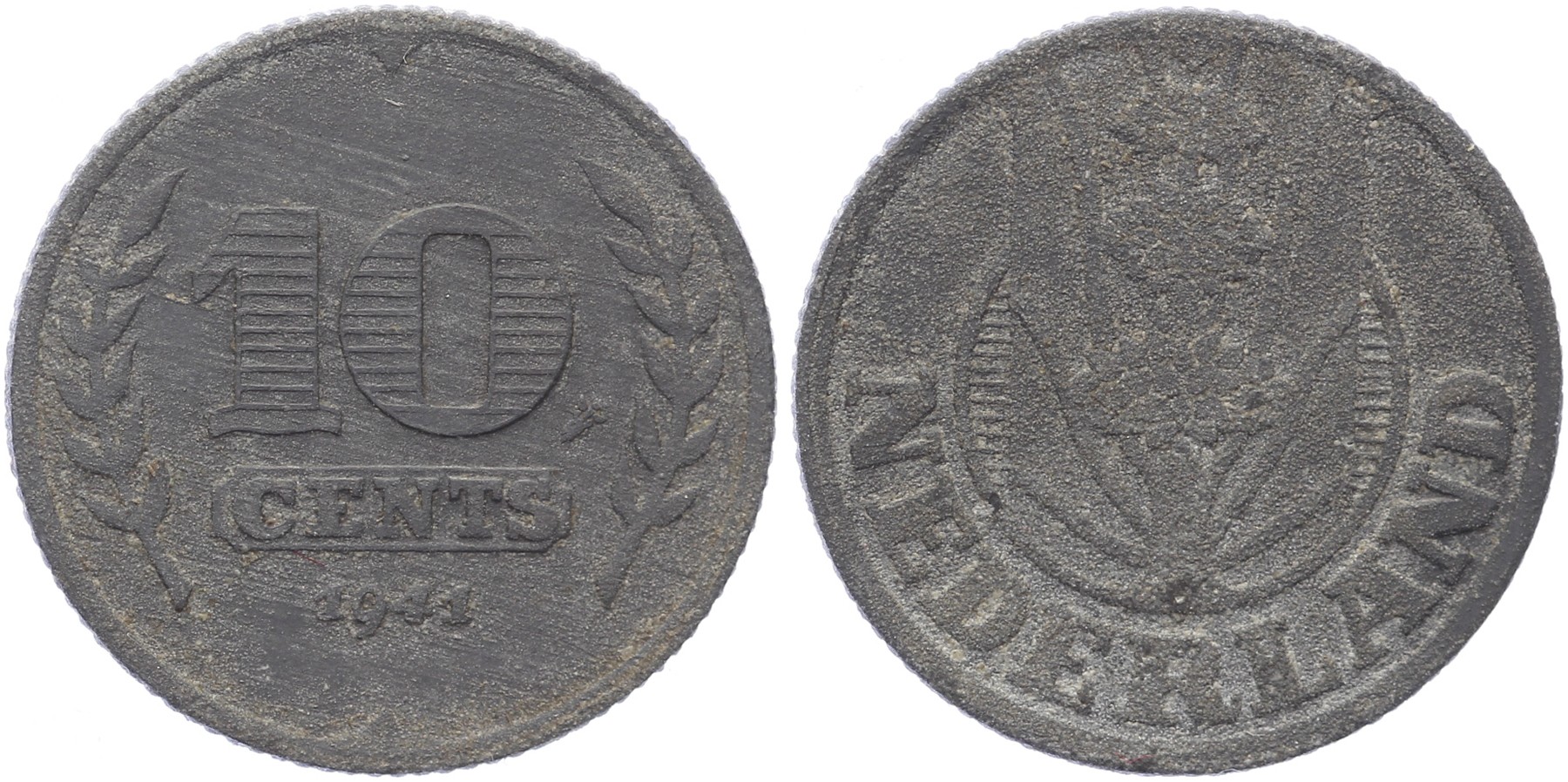 10 Cents 1941, driekruinenboom Sch. 1043b Zeer fraai