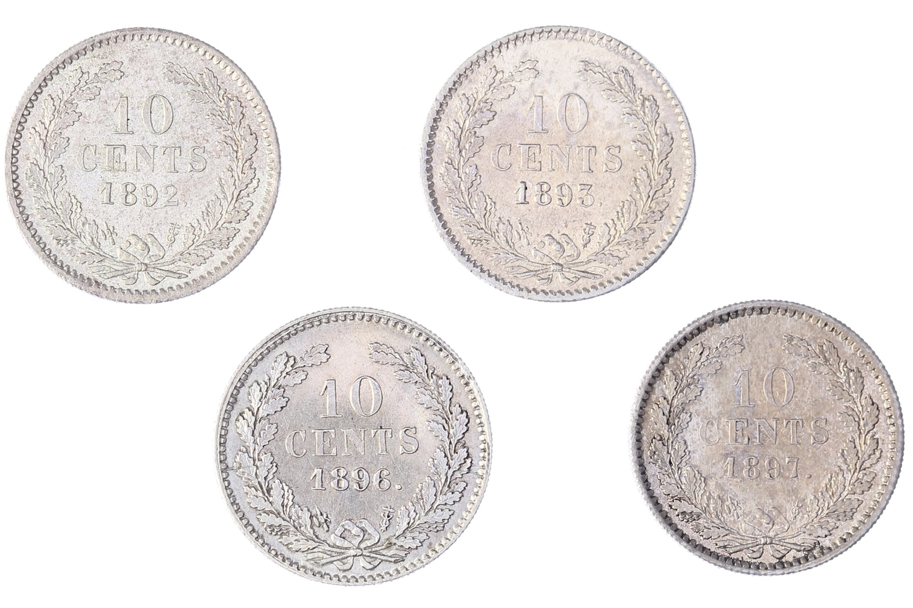 Lot (4) 10 Cents 1892, 1893, 1896 en 1897 Sch. 876, 878, 881 en 882 Ruim prachtig