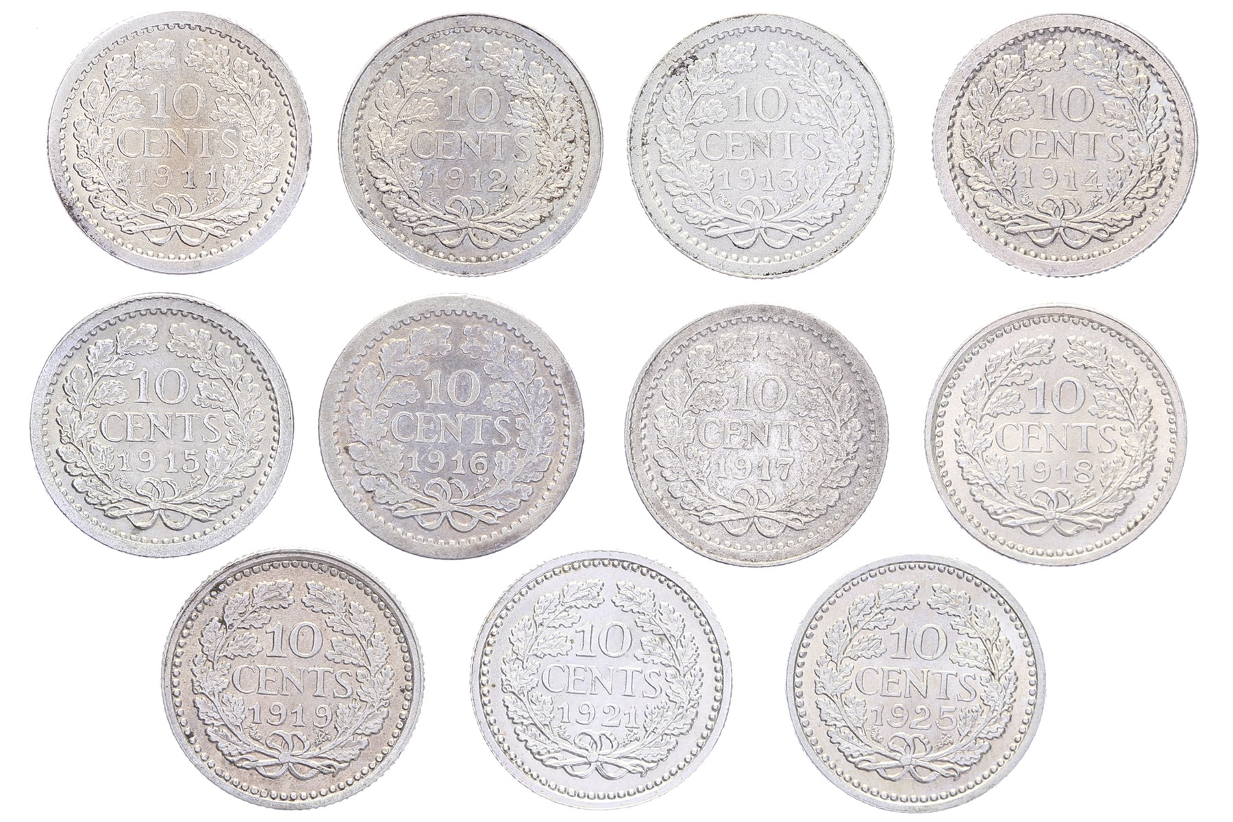 Lot (11) 10 Cents type Hermelijnen mantel, compleet vanaf 1911 Sch. 890 t/m 900 Prachtig en beter