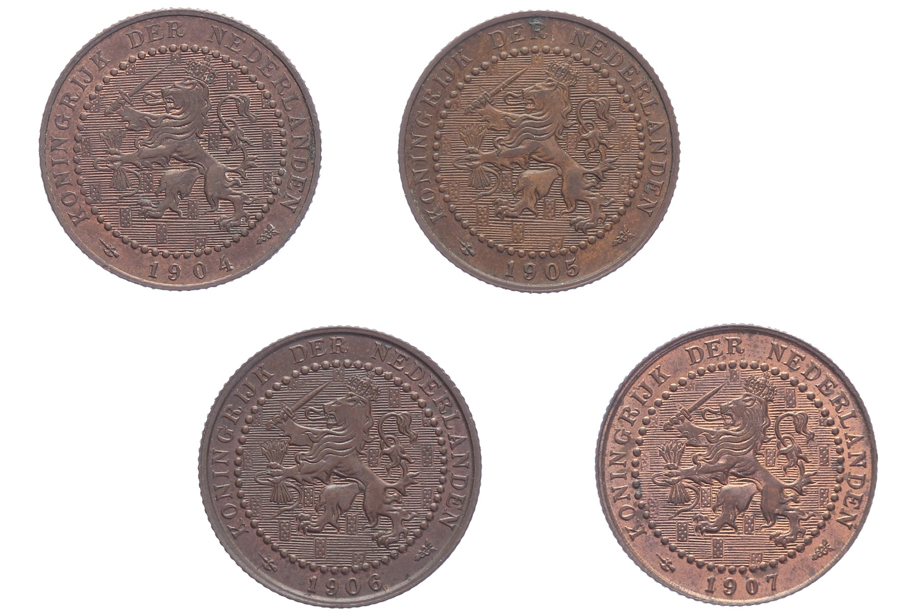 Lot (4) 1 Cent 1904, 1905, 1906 en 1907 Sch. 972 t/m 975. Deels originele kleur Prachtig / FDC