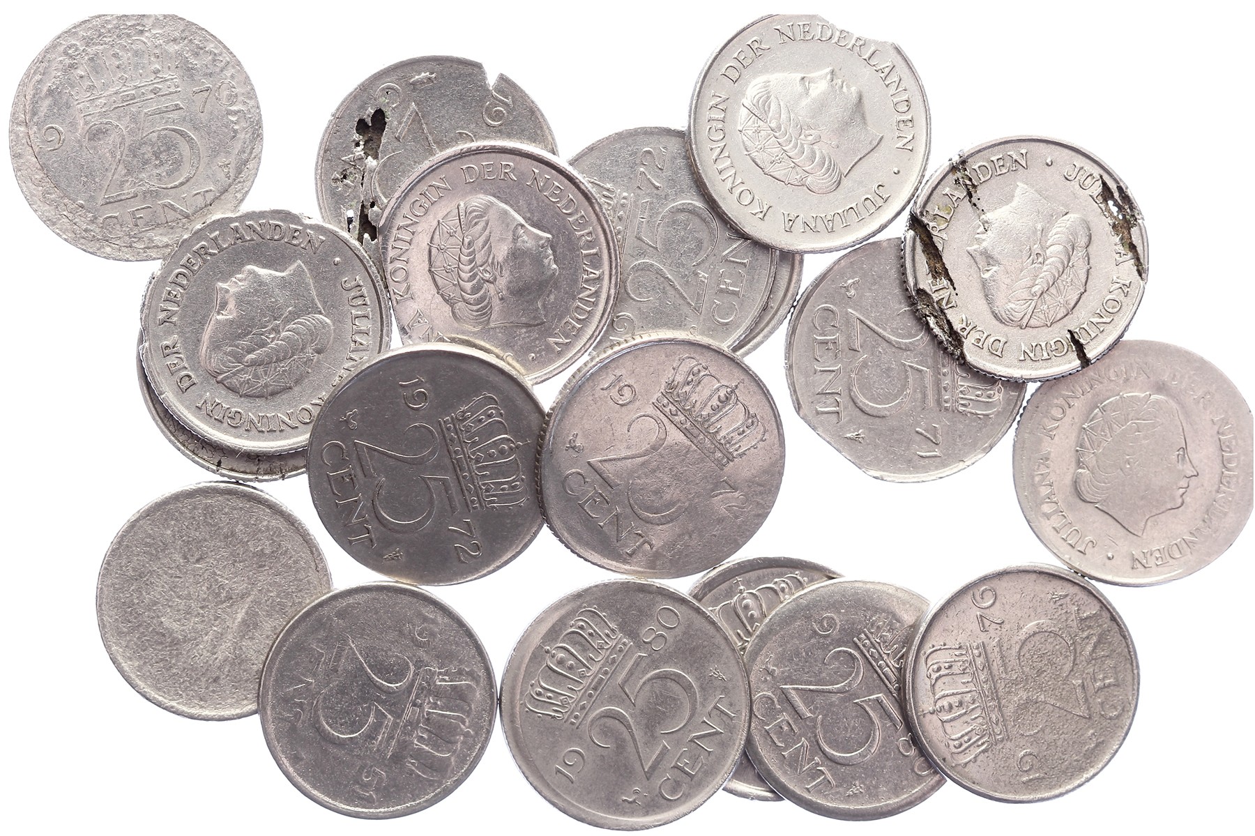 Lot (19) 25 Cents Juliana 1950-1980 misvorming of mishandeling? Kortom, ‘misslagen’ in iedere vorm. Voor wie het leuk vindt!