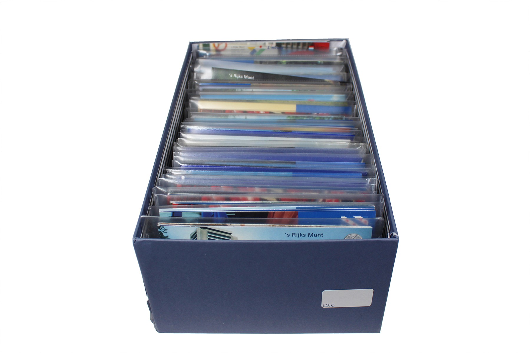 Doos met ca. 45 stuks FDC-sets Nederland 1987-2002. Ook doubletten.