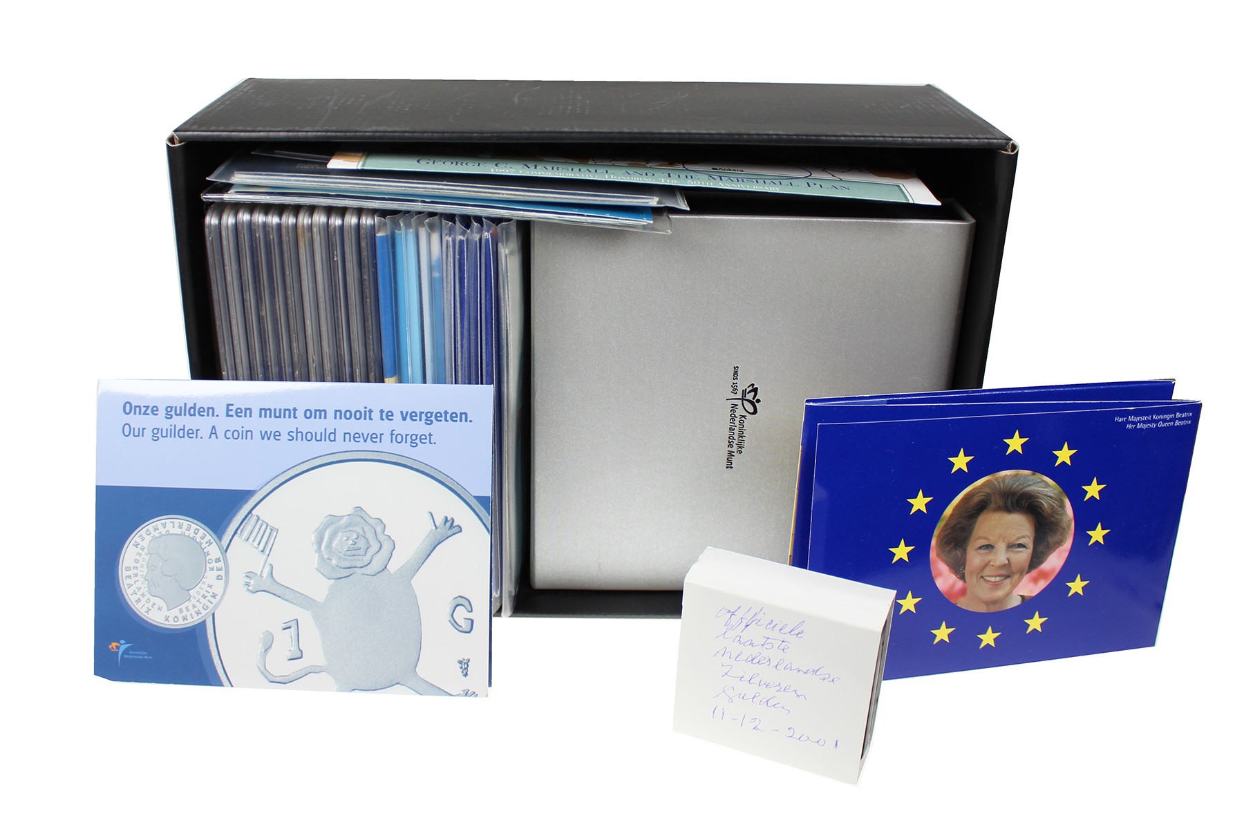 Doos met o.a. 30 FDC-sets 1980-2002. Toegevoegd: diverse moderne uitgiften.