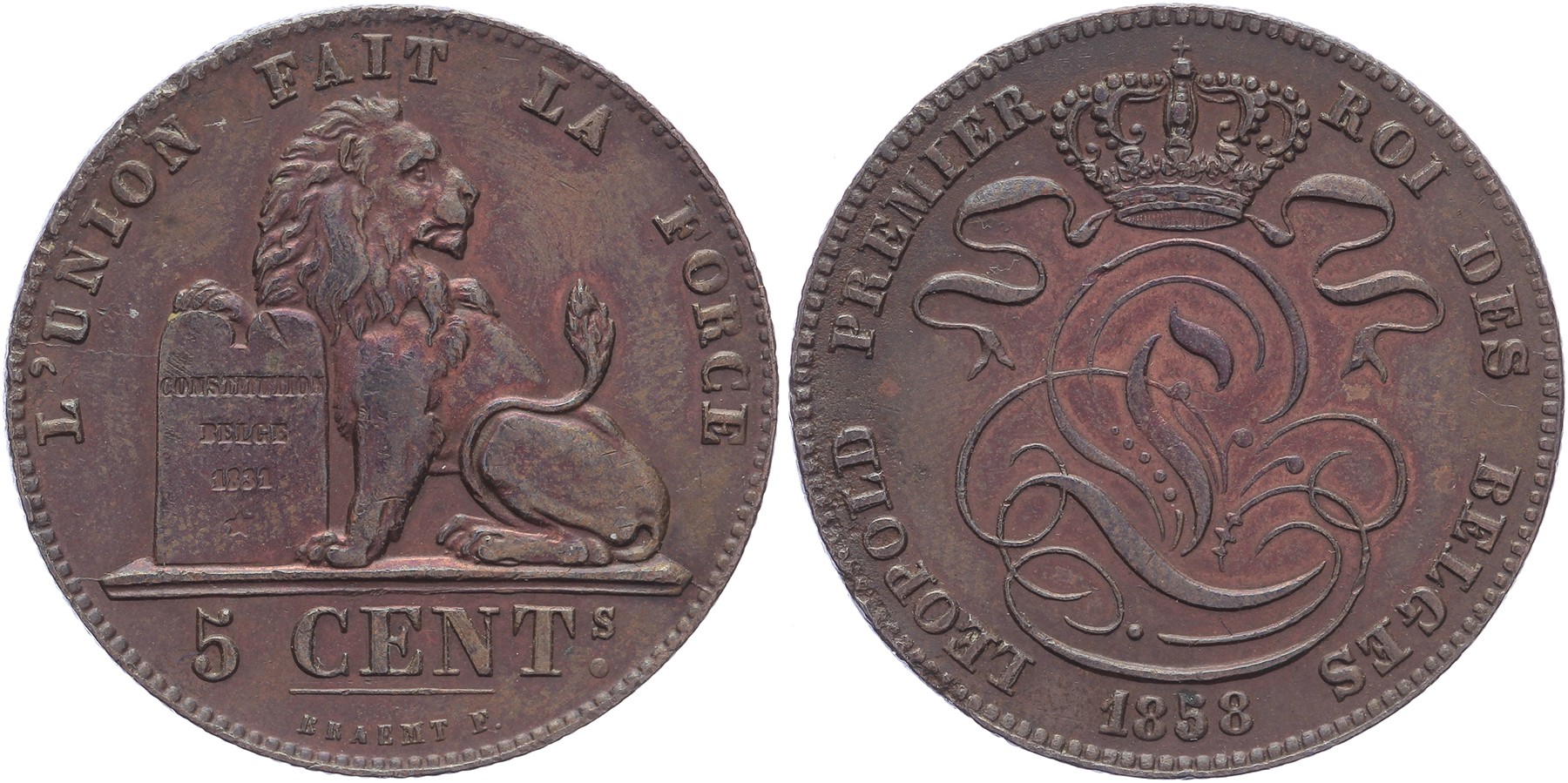 5 Centimes 1858. KM 5.1. Lichte randschade keerzijde. Prachtig.