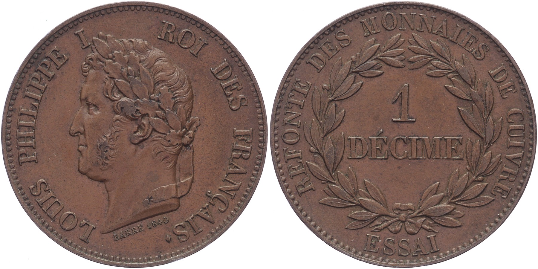 Essai 1 Décime 1840 Barré. Gad. 212.1; KM E10. XF.