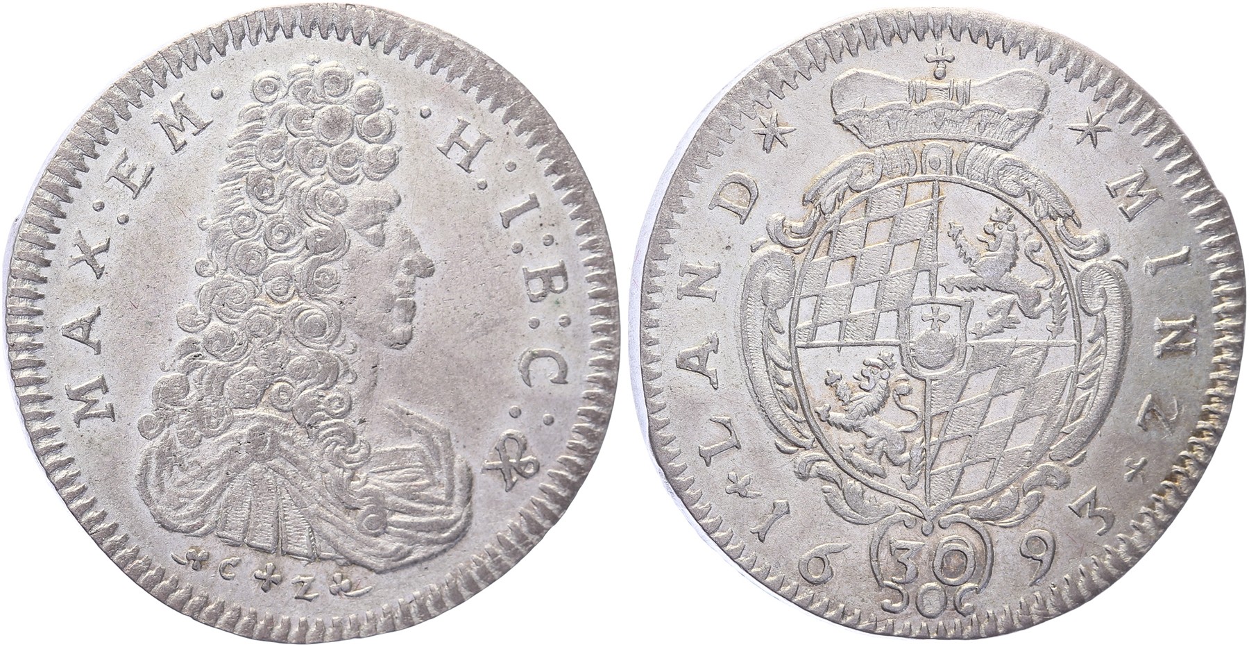 30 Kreuzer (Gulden) 1693. Hahn 195; KM 356. Vorzüglich.
