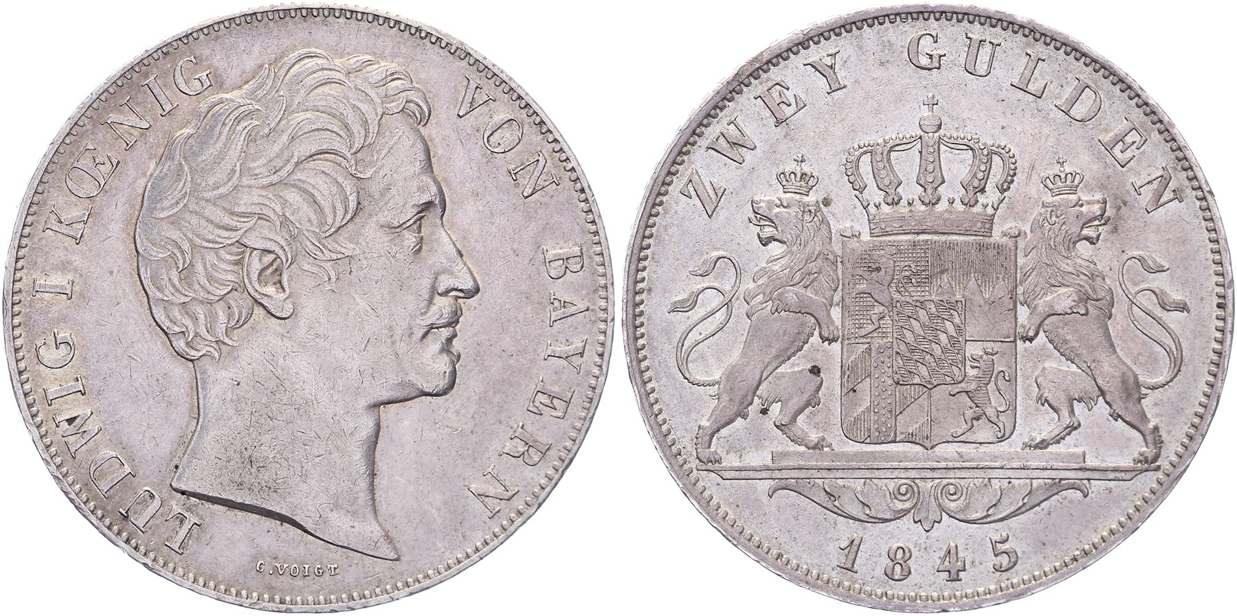 Doppelgulden 1845. AKS 77; KM 819. Sehr schön.
